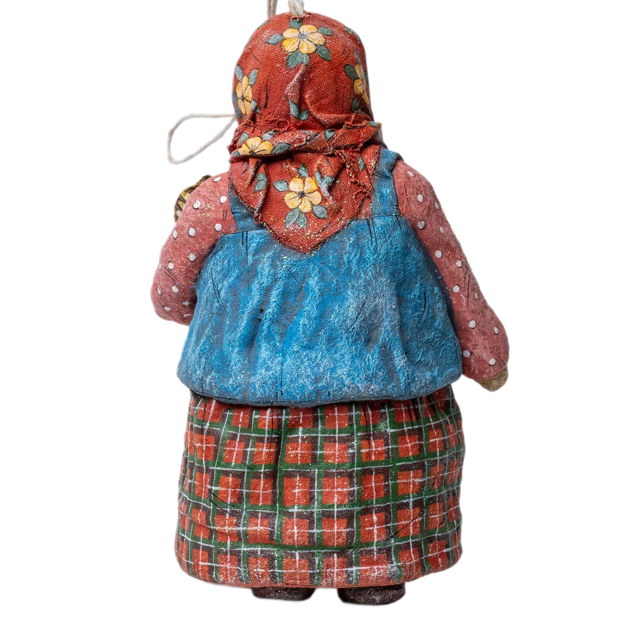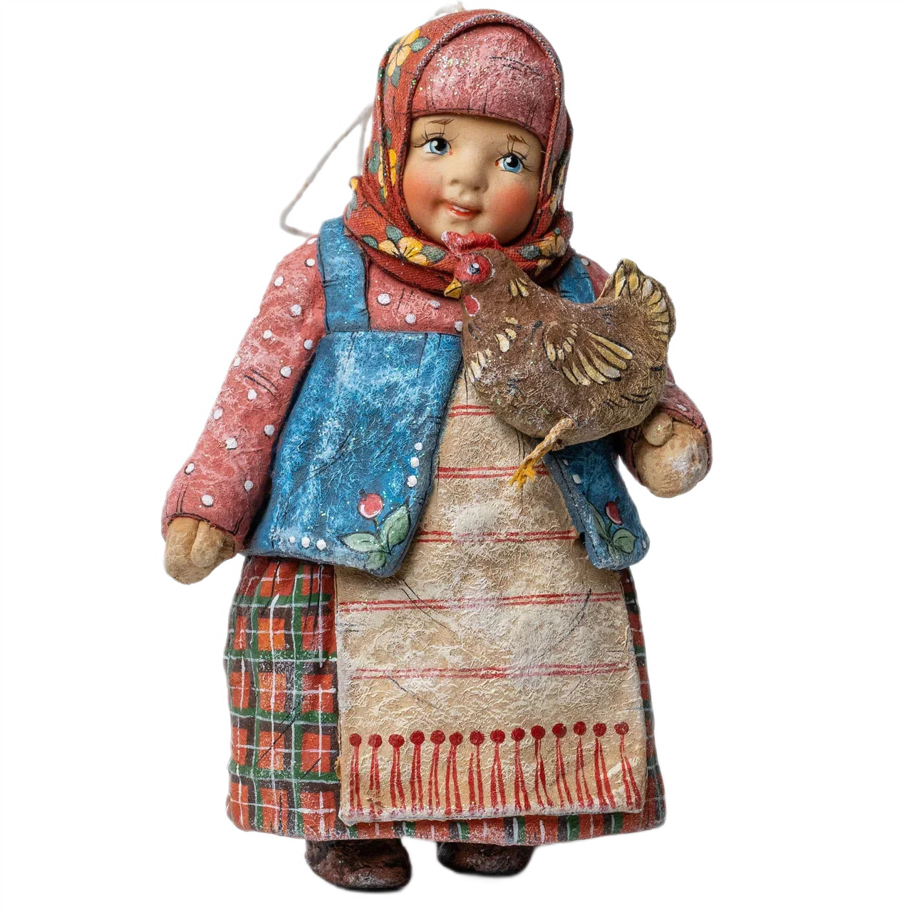 Коллекционная елочная ватная игрушка "Матренушка с курочкой" из коллекции "Русский север"
