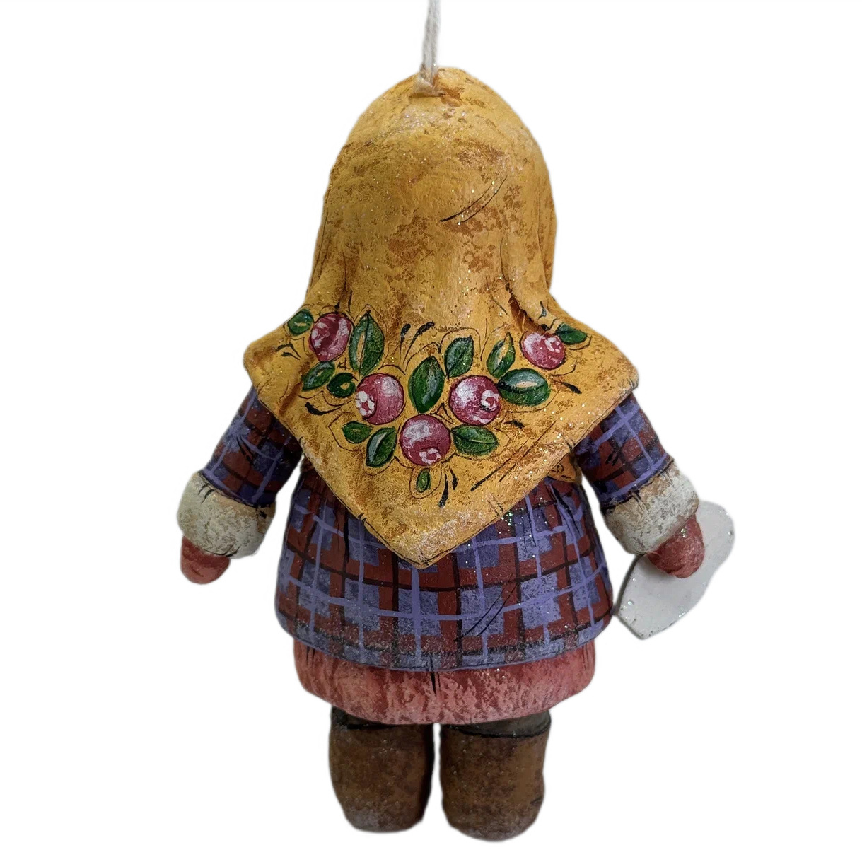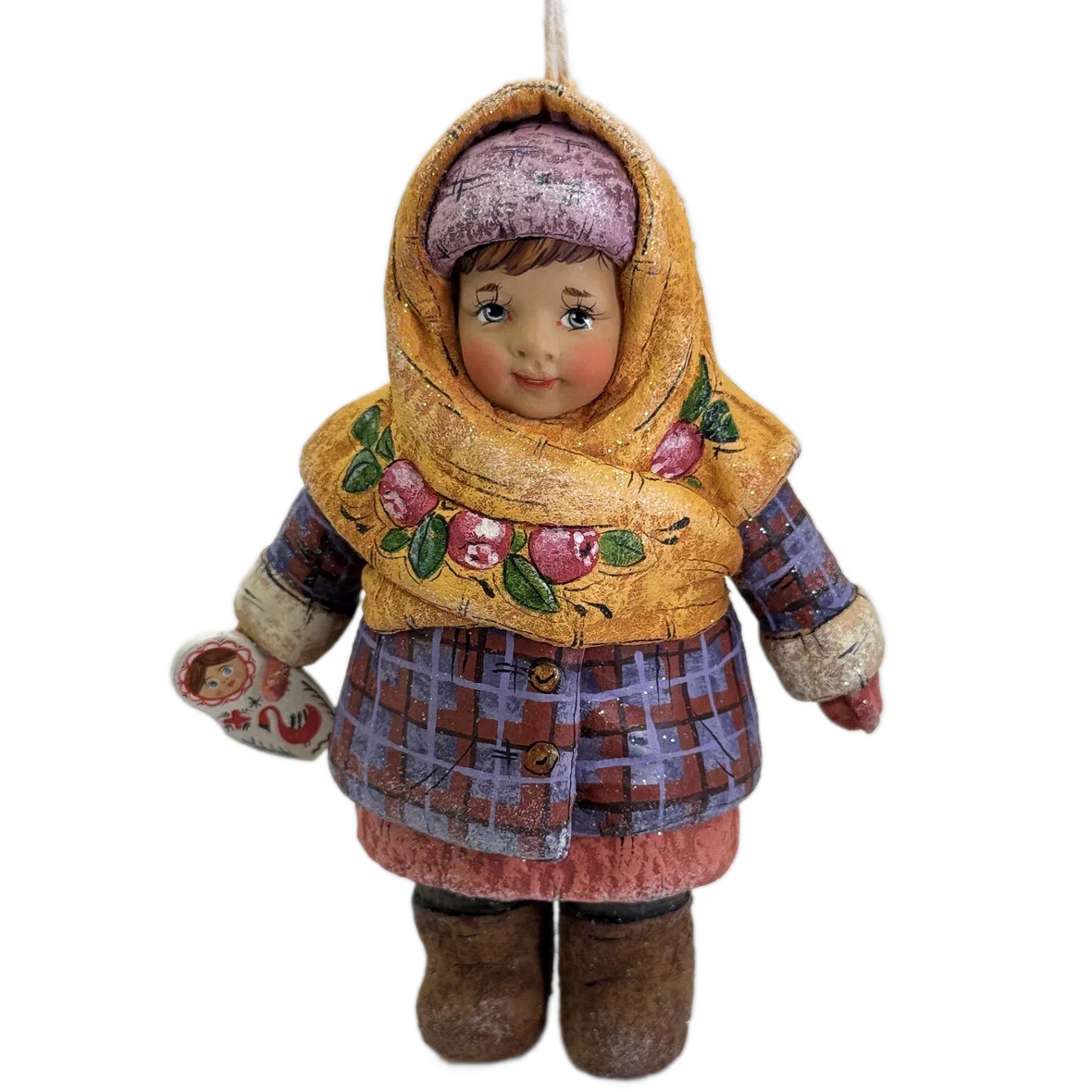 Коллекционная елочная ватная игрушка "Милушка с матрешкой" из коллекции "Русский север"