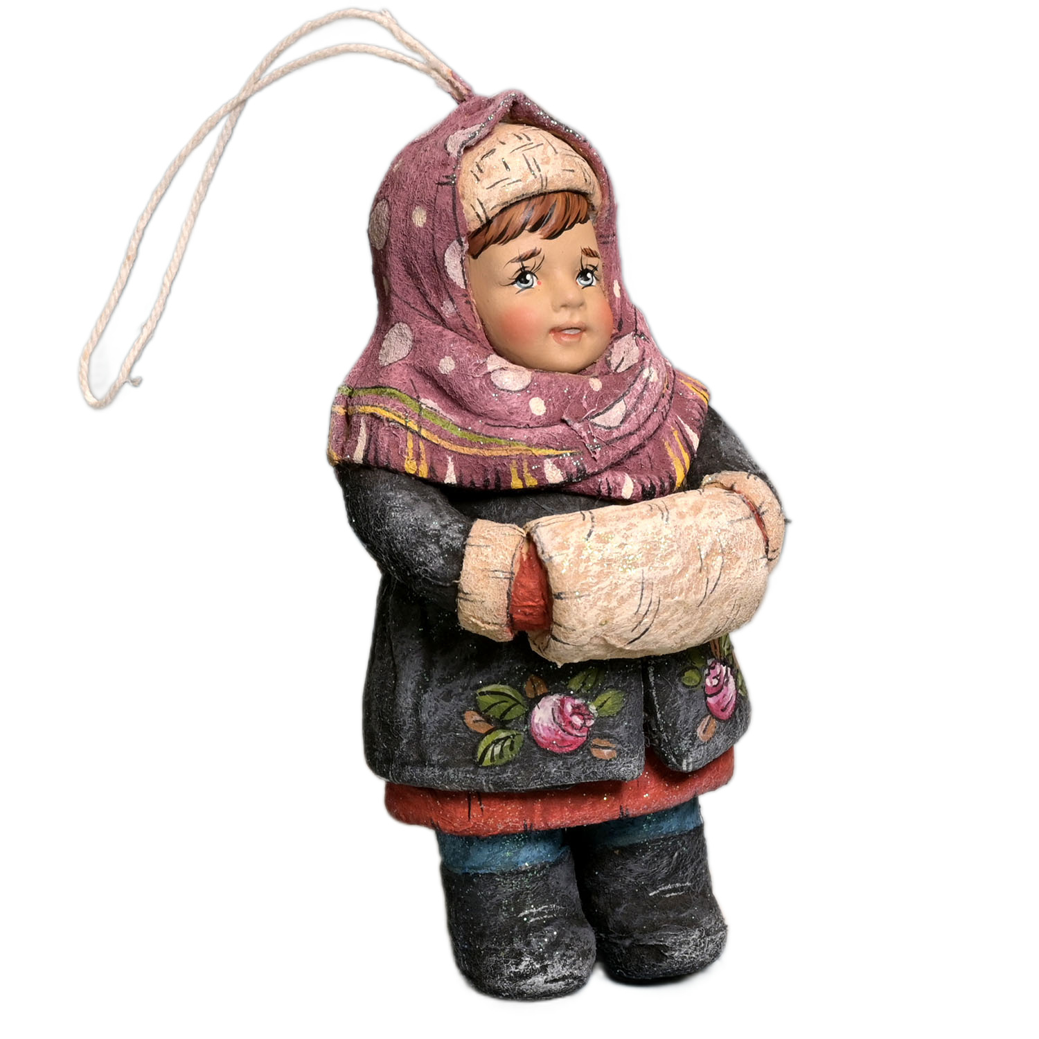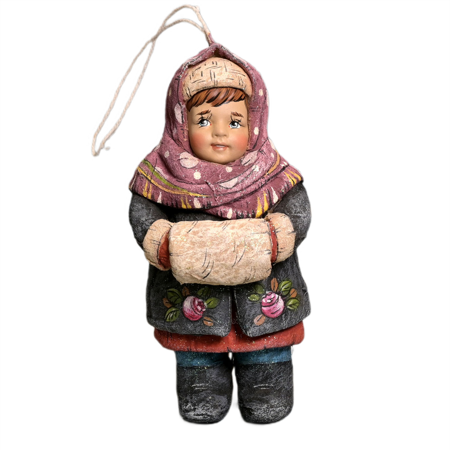 Коллекционная елочная ватная игрушка "Настенька в муфточке" из коллекции "Русский север"