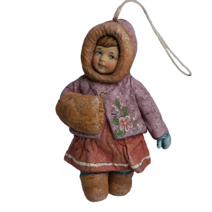 Коллекционная елочная ватная игрушка "Наталья в муфточке" из коллекции "19 век"