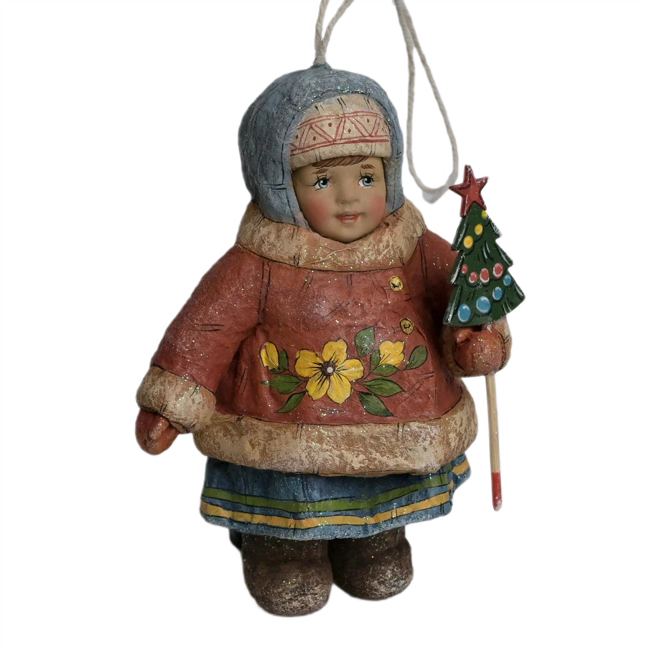 Коллекционная елочная ватная игрушка "Ниночка с елочкой" из коллекции "Русский север"