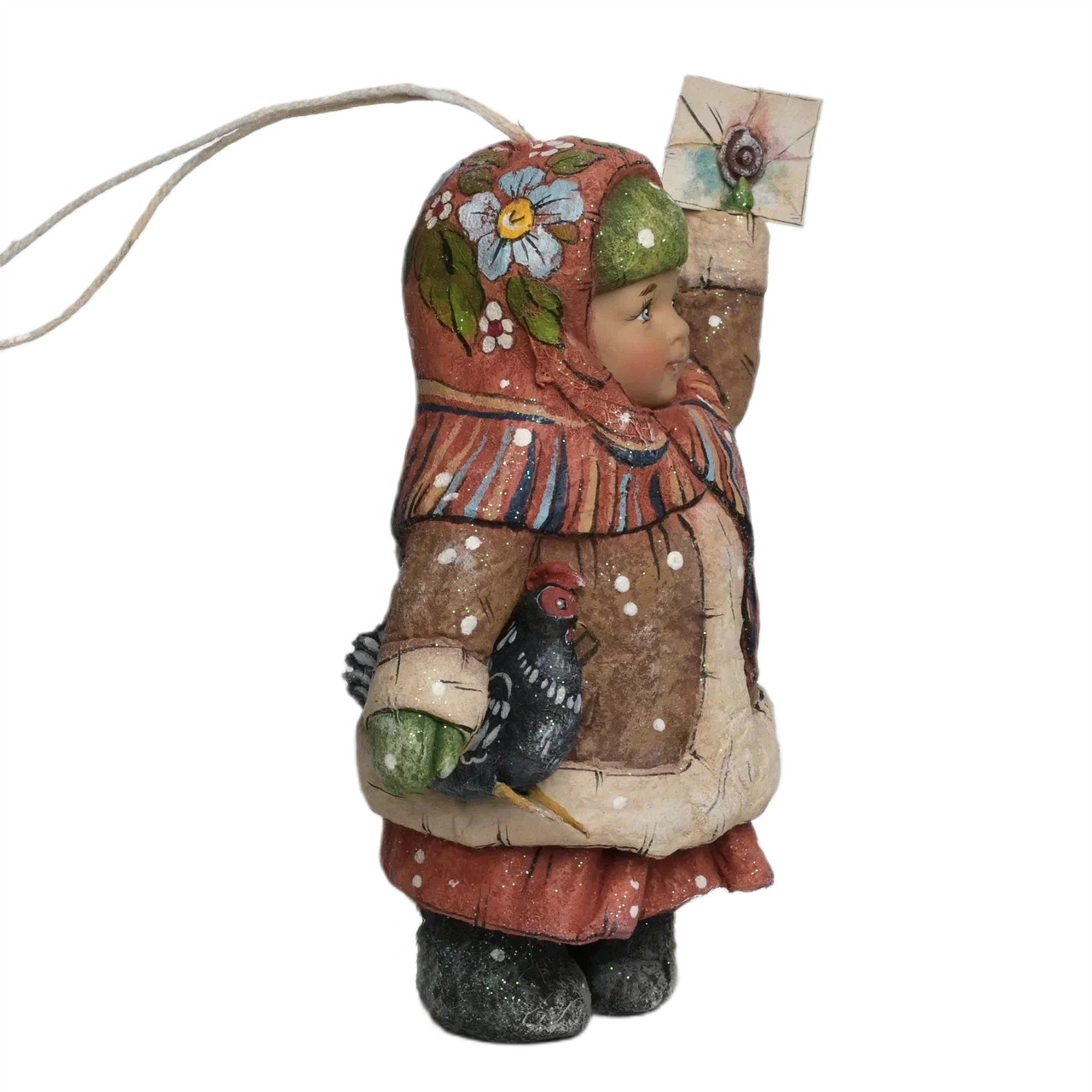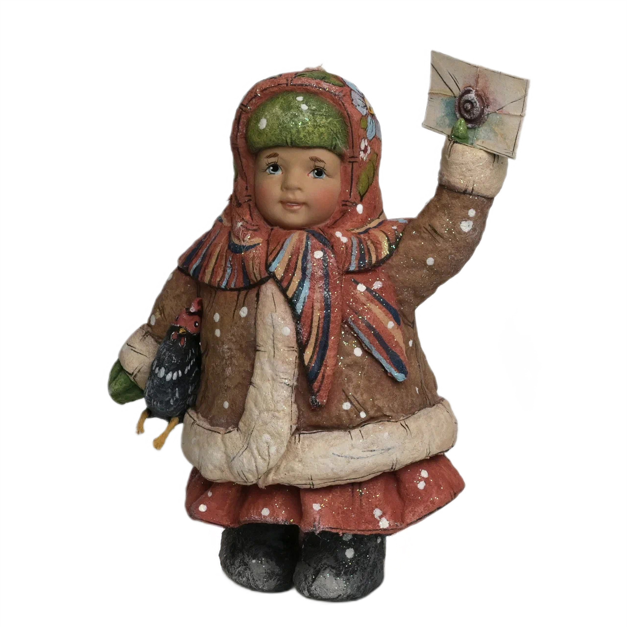 Коллекционная елочная ватная игрушка "Оксанушка с письмом" из коллекции "Русский север"