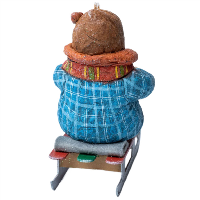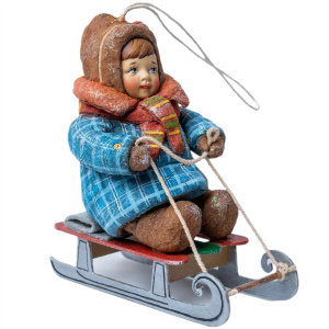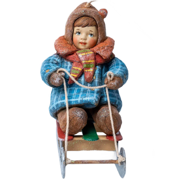 Коллекционная елочная ватная игрушка "Олесенька на саночках" из коллекции "Зимние забавы"