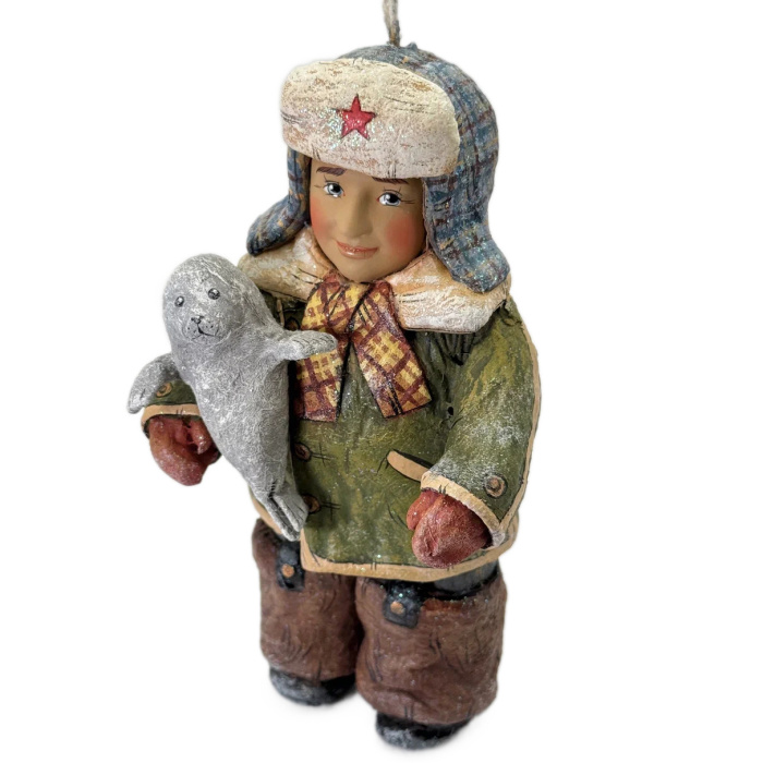 Коллекционная елочная ватная игрушка "Полярник с бельком" из коллекции "Арктика"