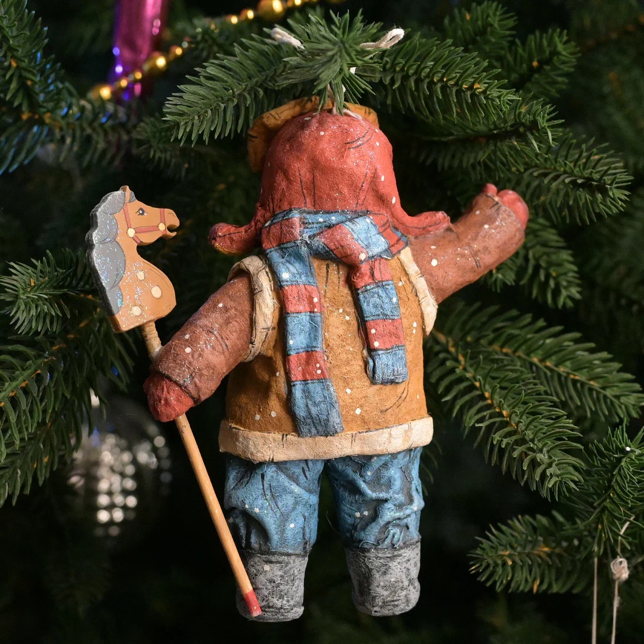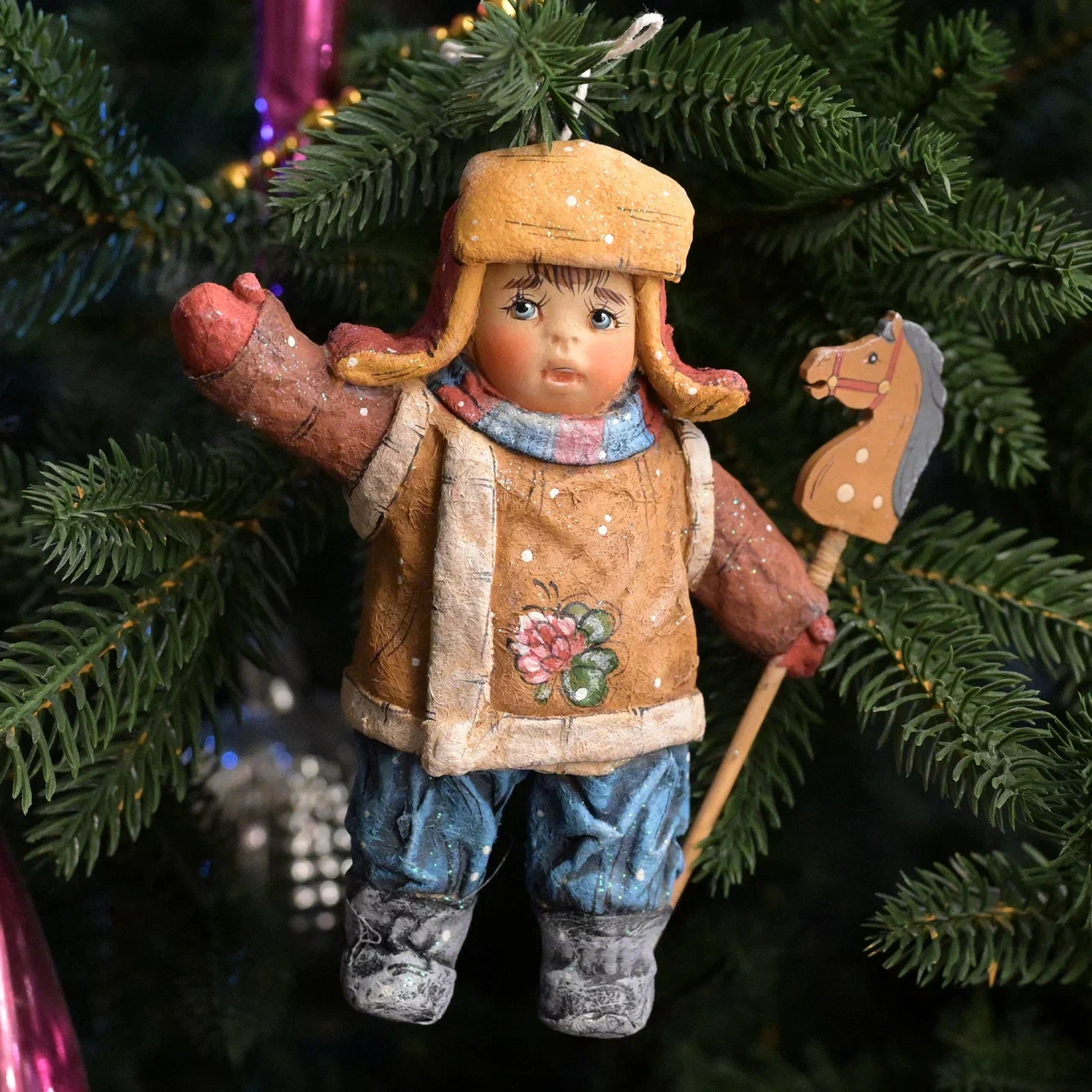 Коллекционная елочная ватная игрушка "Прокопий с лошадкой" из коллекции "Русский север"