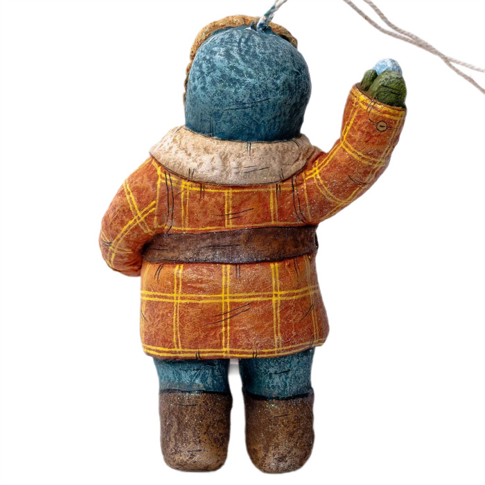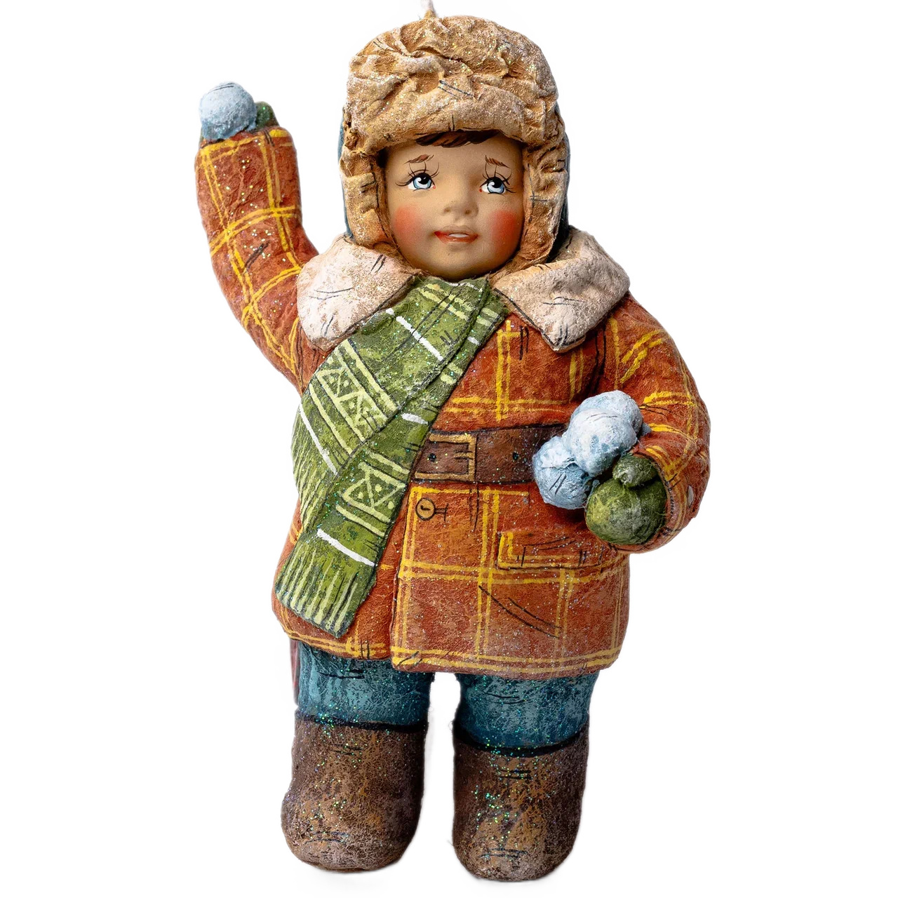 Коллекционная елочная ватная игрушка "Савелий со снежками" из коллекции "Зимние забавы"