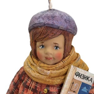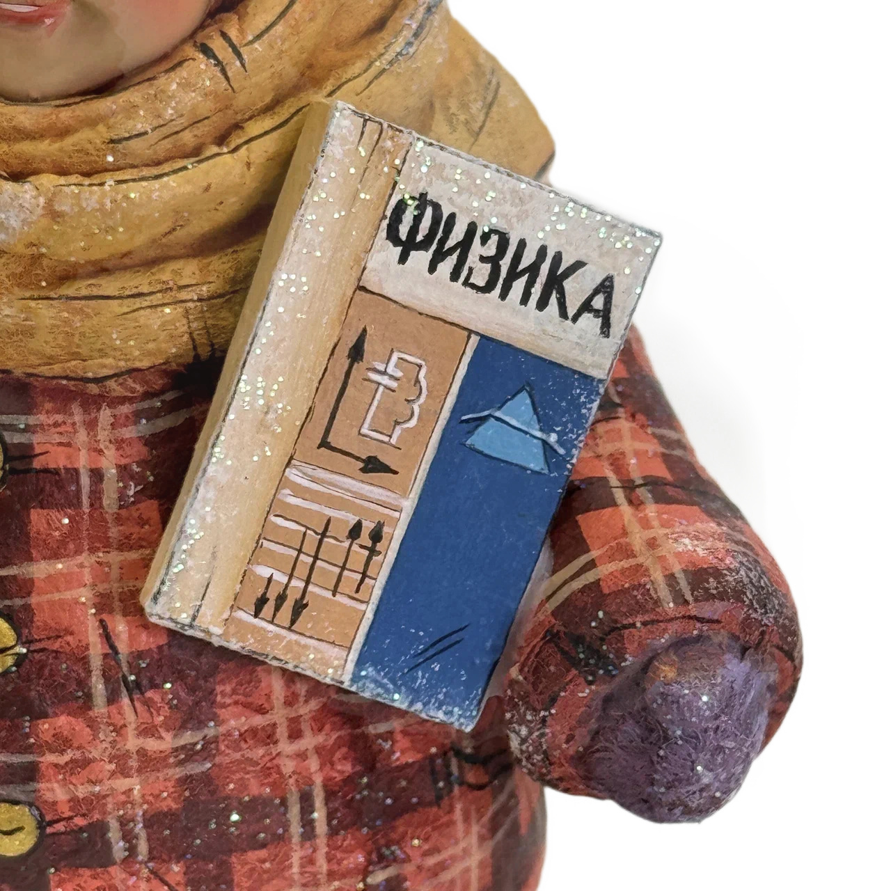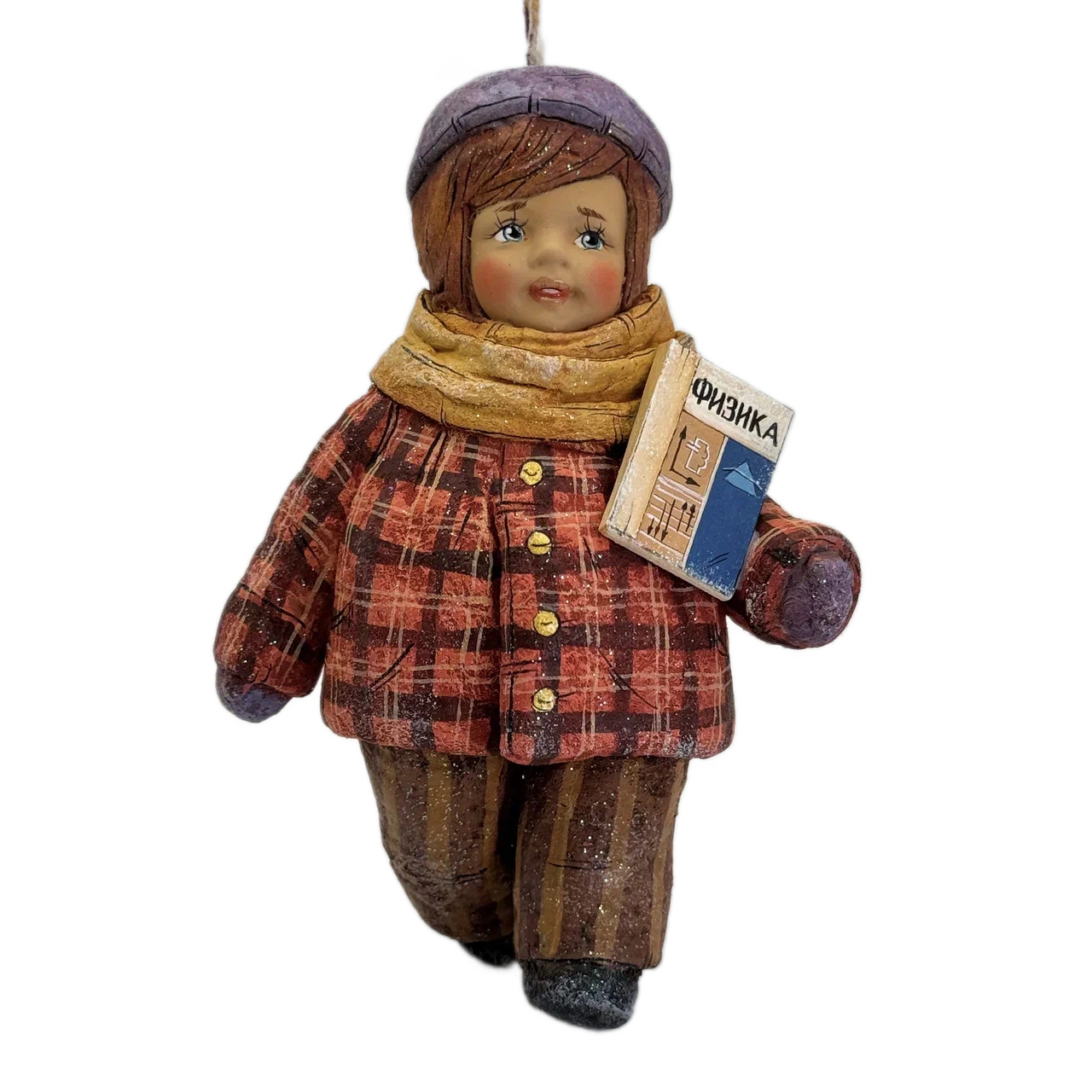 Коллекционная елочная ватная игрушка "Школьник с учебником" из коллекции "Советское детство"