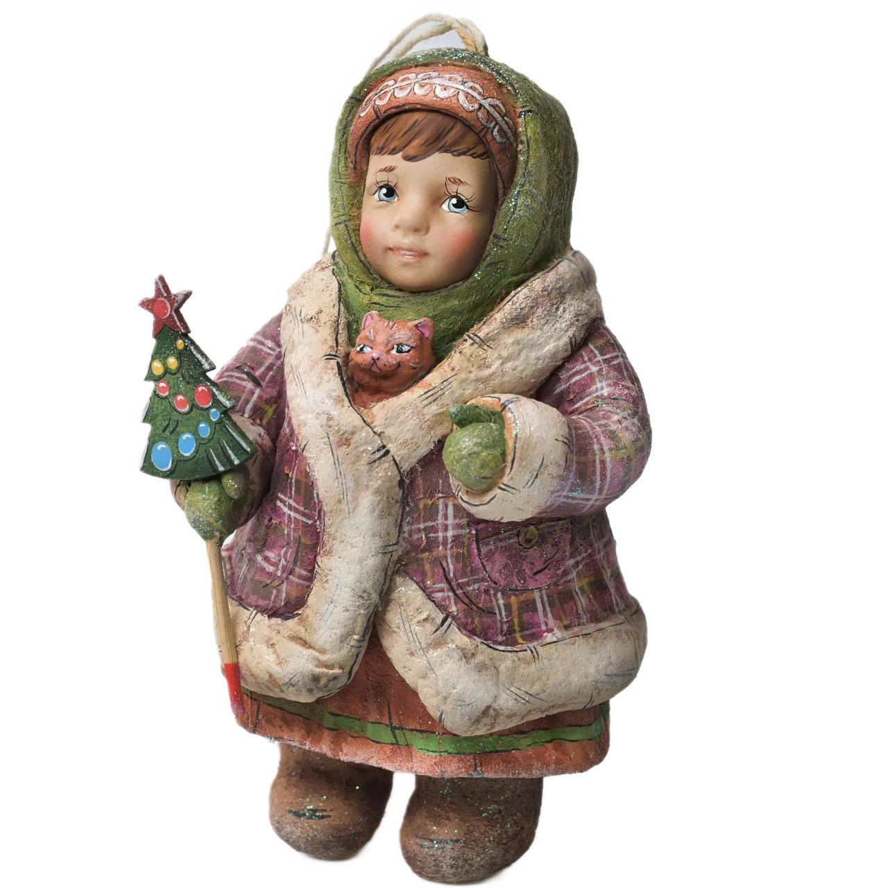 Коллекционная елочная ватная игрушка "Славинушка с котейкой" из коллекции "Русский север"