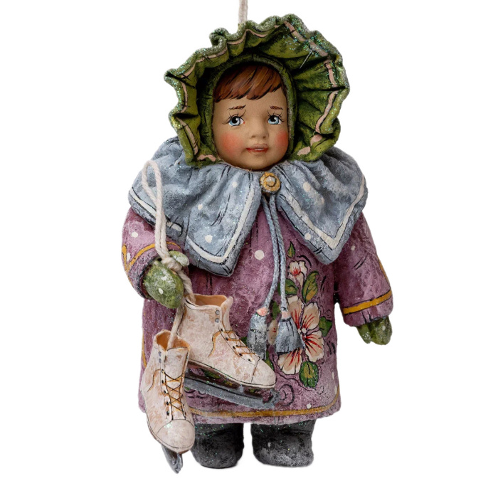 Коллекционная елочная ватная игрушка "Софьюшка с коньками" из коллекции "19 век"