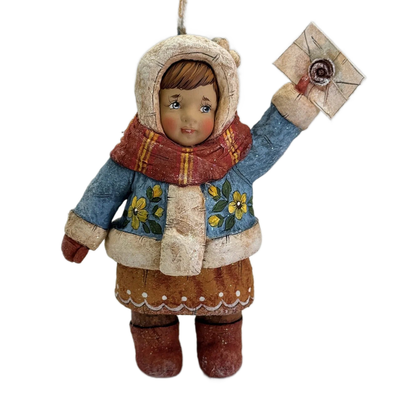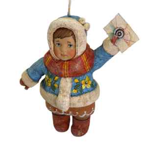 Коллекционная елочная ватная игрушка "Танечка с письмом" из коллекции "Советское детство"