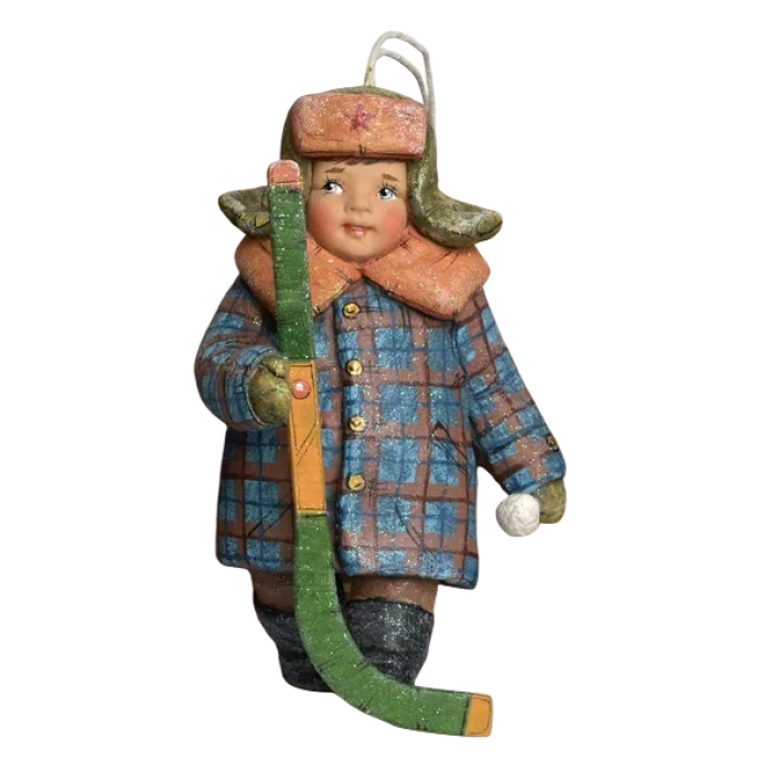 Коллекционная елочная ватная игрушка "Толенька с клюшкой" из коллекции "Зимние забавы"