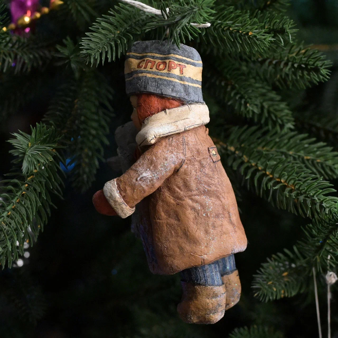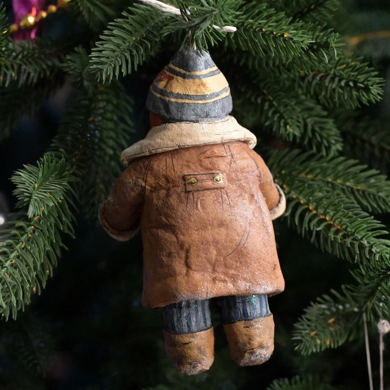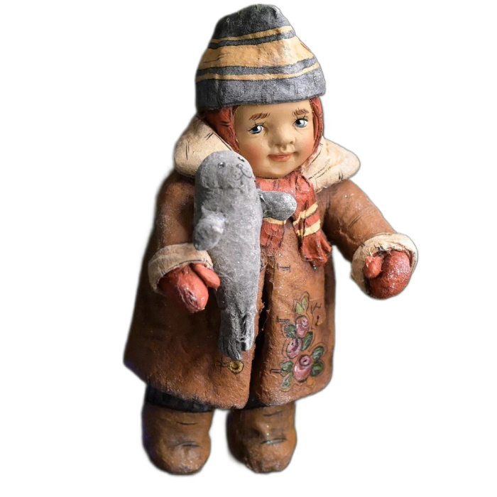 Коллекционная елочная ватная игрушка "Толюшка с морским котиком" из коллекции "Советское детство"