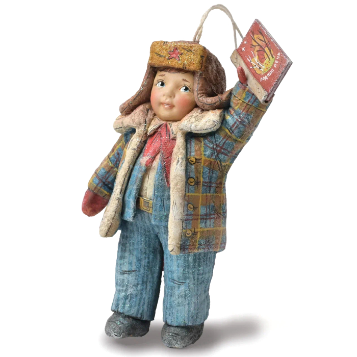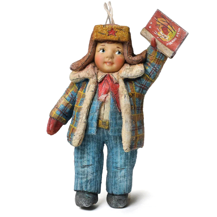 Коллекционная елочная ватная игрушка "Юный пионер с учебником" из коллекции "Советское детство"