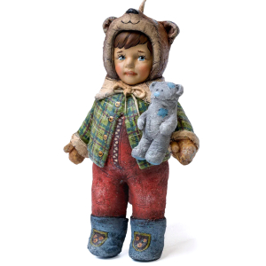 Коллекционная елочная ватная игрушка "Вадим в костюме медвежонка" из коллекции "Детский утренник"