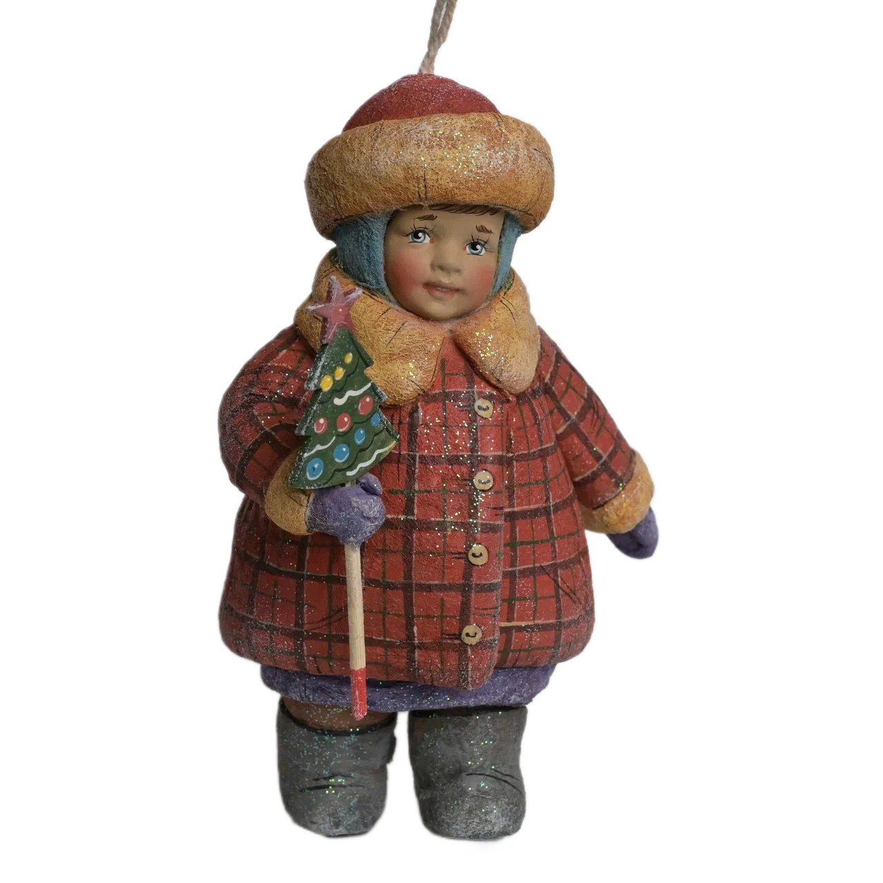 Коллекционная елочная ватная игрушка "Валерия с елочкой" из коллекции "Советское детство"