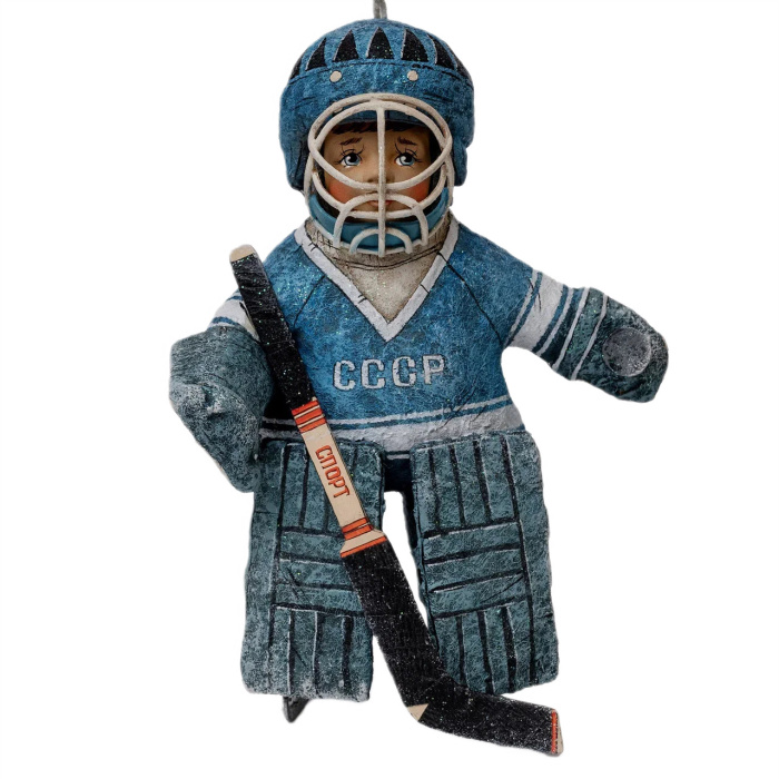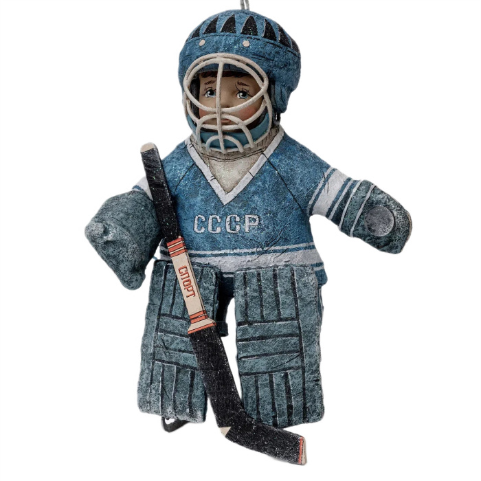 Коллекционная елочная ватная игрушка "Вратарь СССР в синей форме" из коллекции "Профессии"