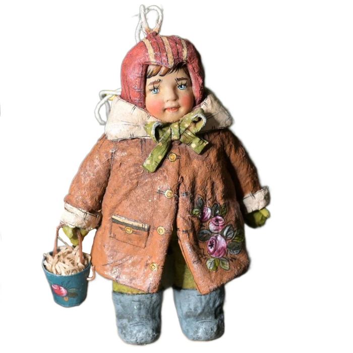 Коллекционная елочная ватная игрушка "Женечка с ведерком" из коллекции "Советское детство"