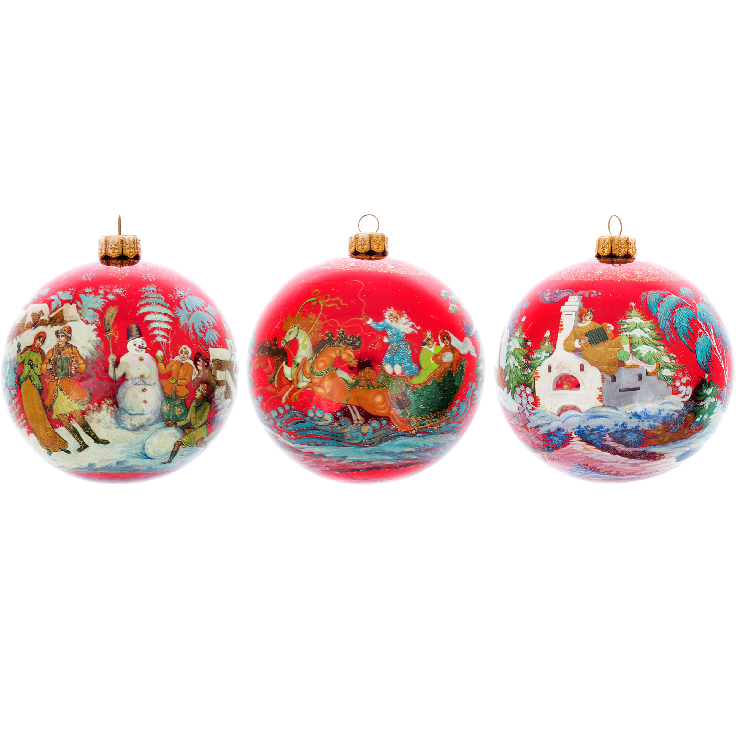 Набор ёлочных шаров "Новогодние забавы" 3 шт., Палех