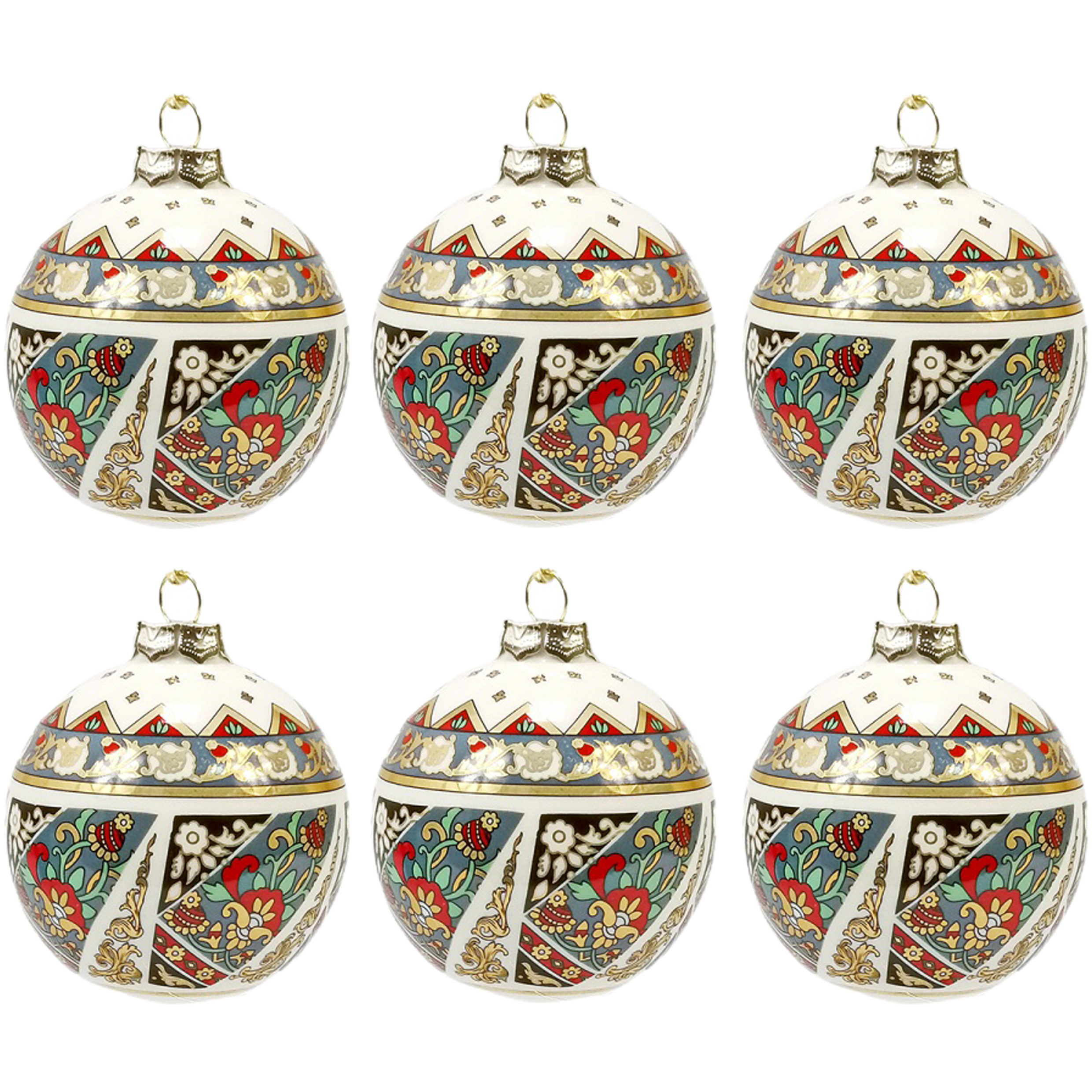 Набор ёлочных шаров из фарфора 6шт "Пэчворк"