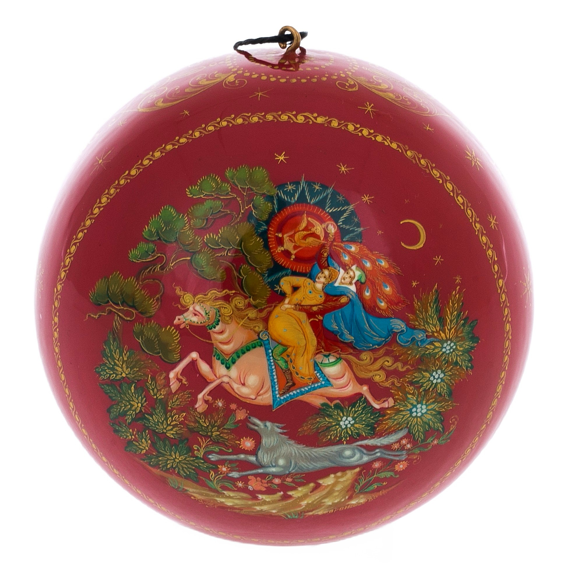Шар ёлочный деревянный "Иван-царевич и серый волк" № 185 Терентьева О.