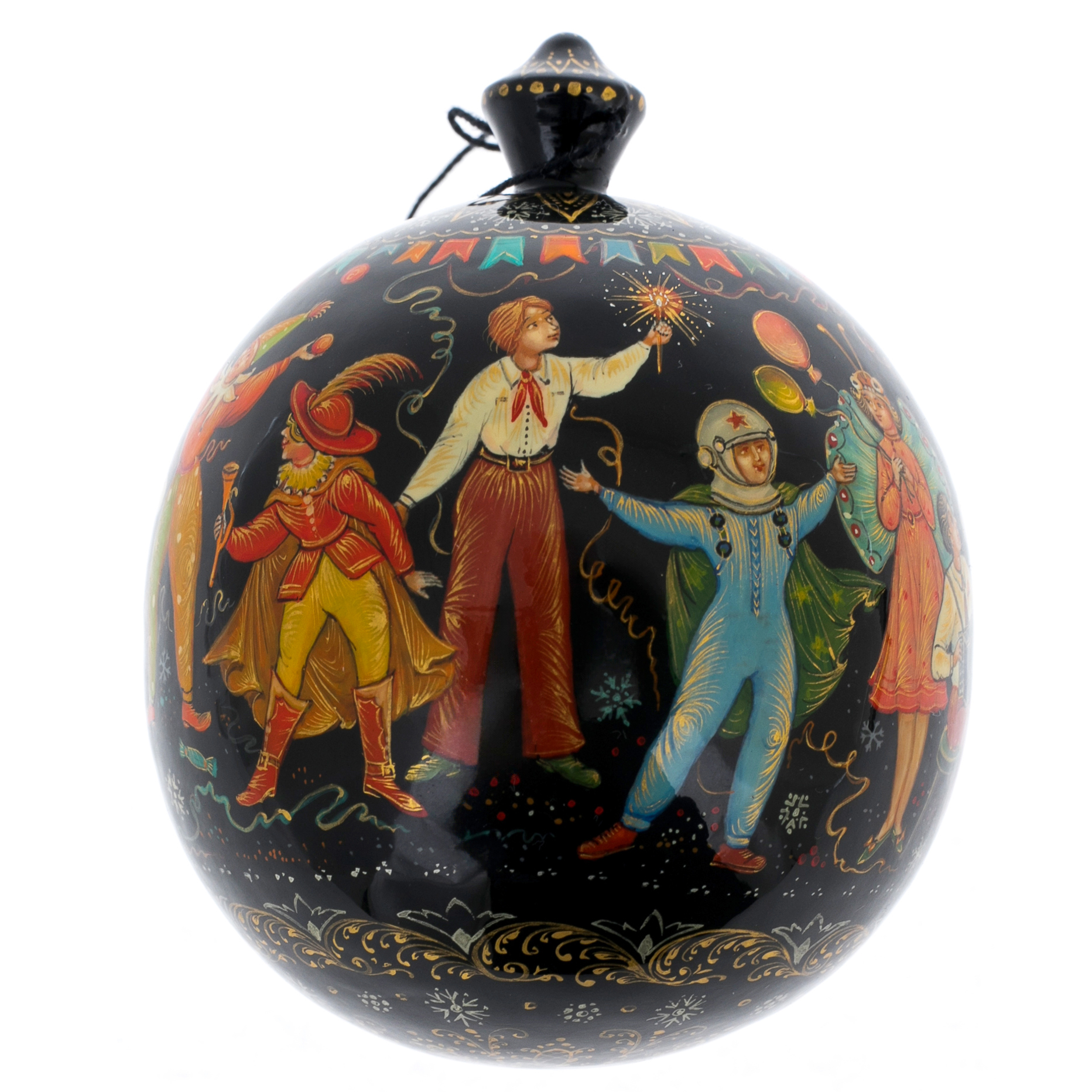 Шар ёлочный деревянный "Новогодний карнавал" Чапарина, Палех