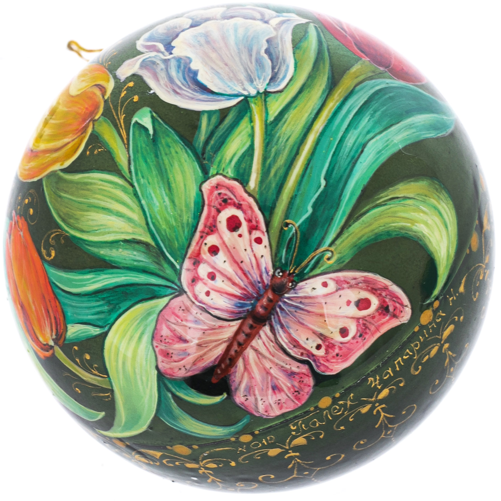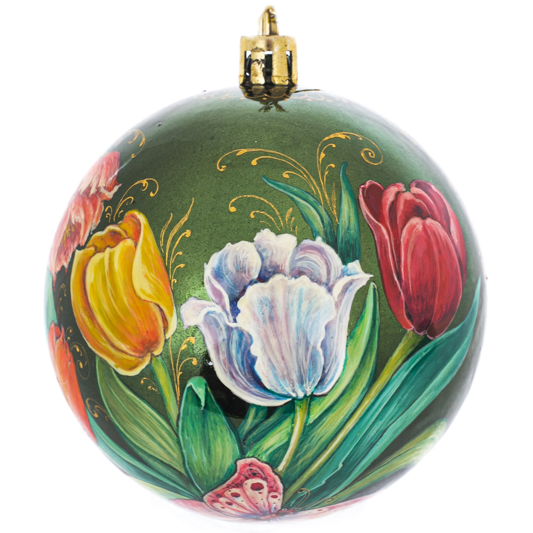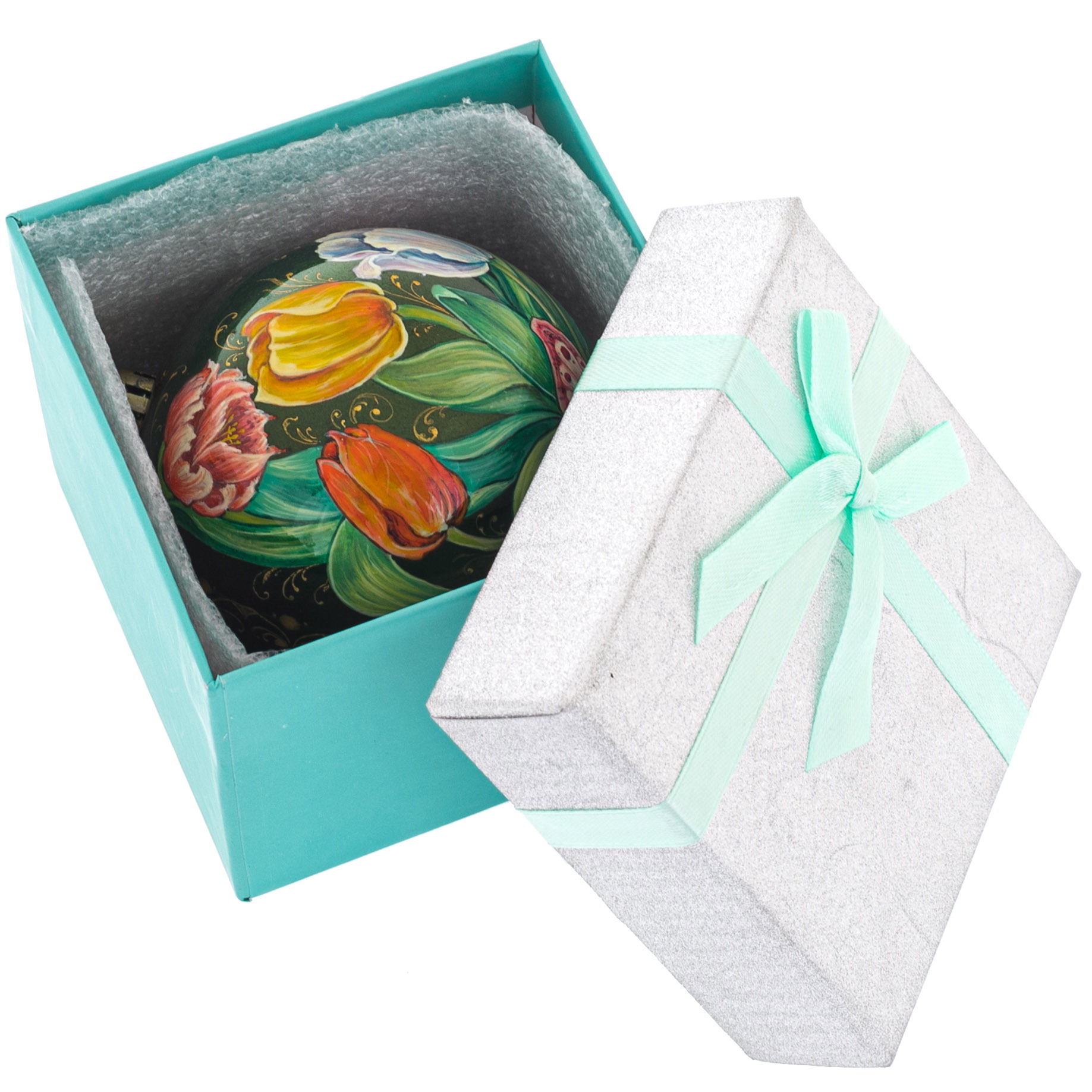 Шар ёлочный деревянный "Тюльпаны" Палех