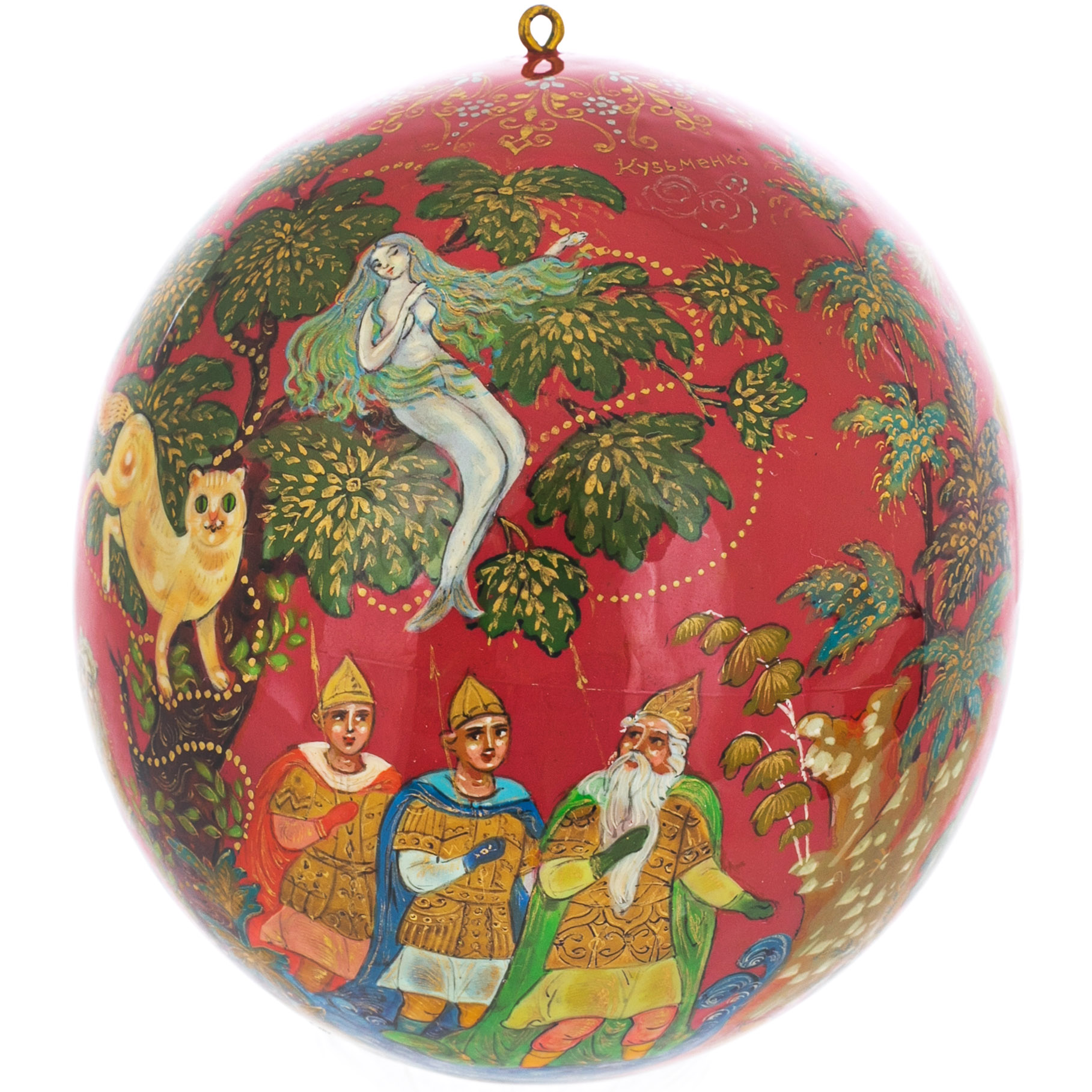 Шар ёлочный деревянный "У Лукоморья" Палех