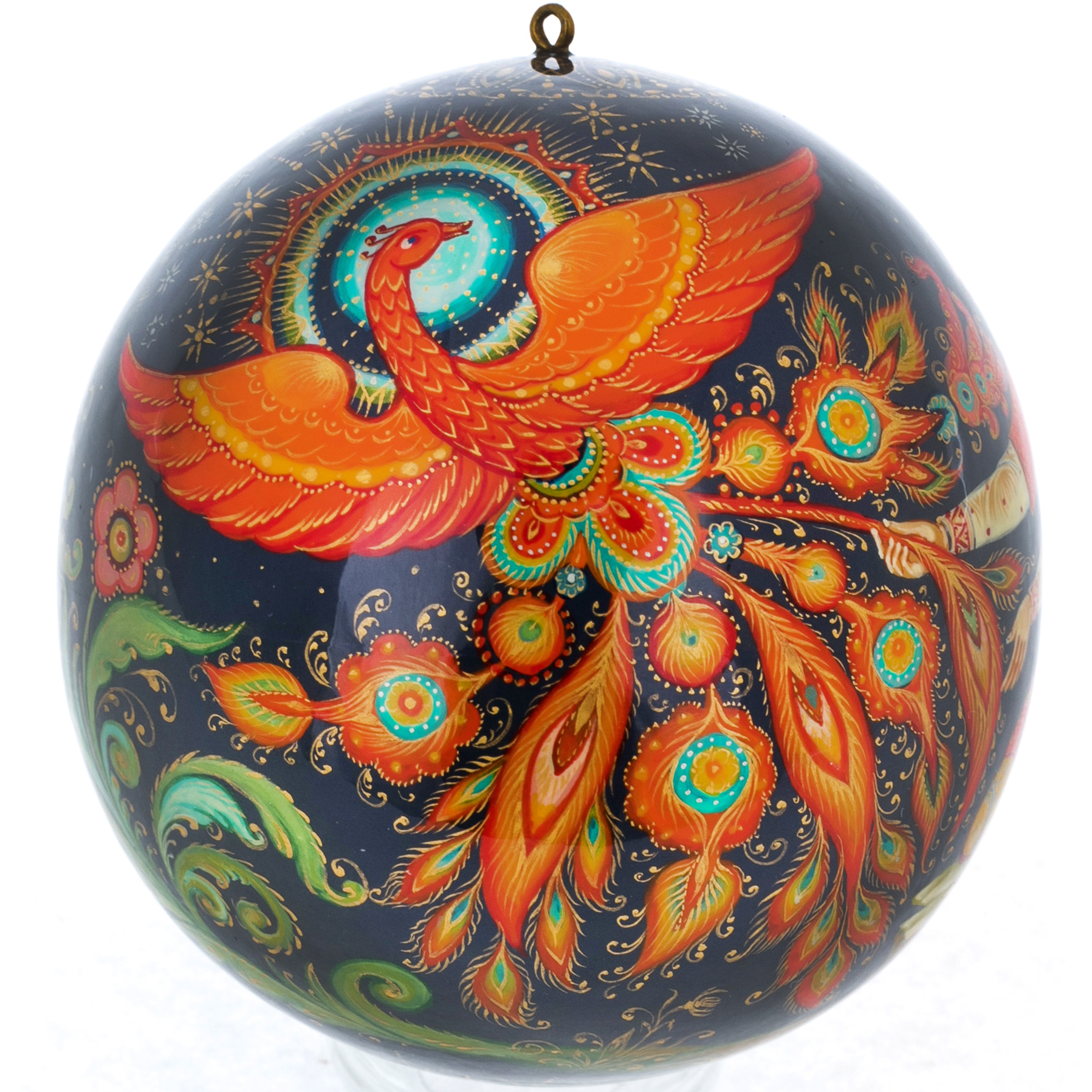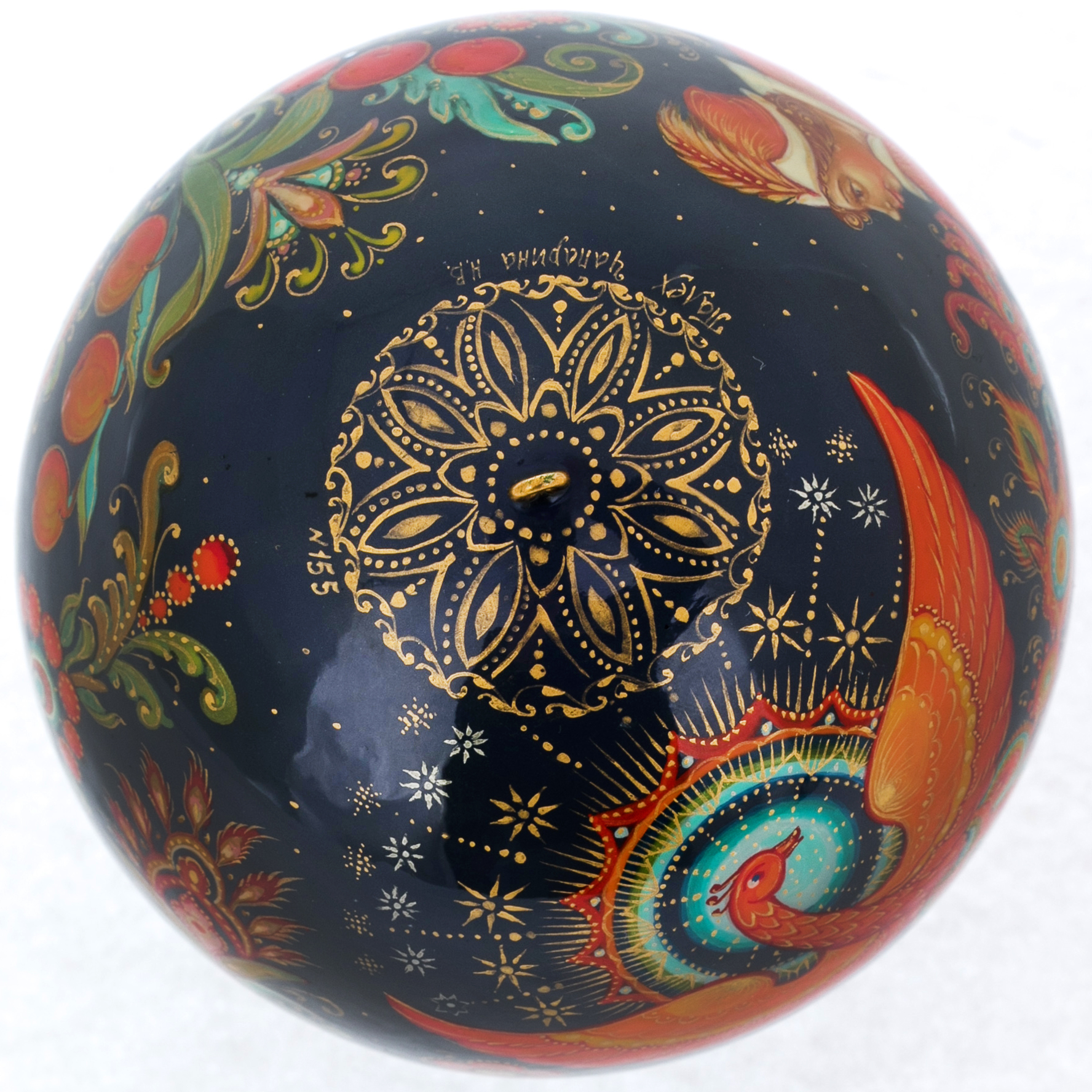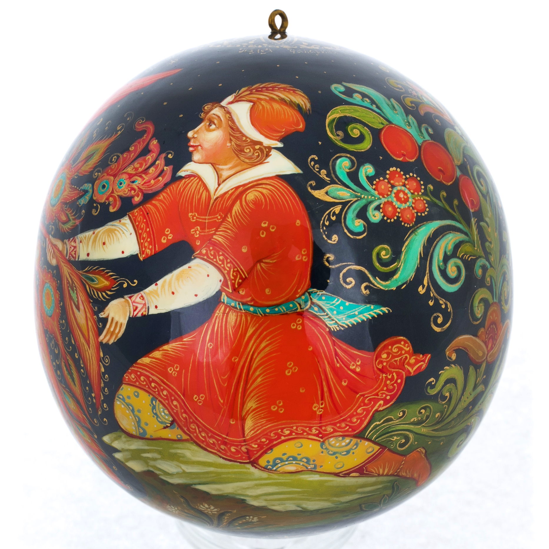 Шар ёлочный деревянный "Жар птица" Палех