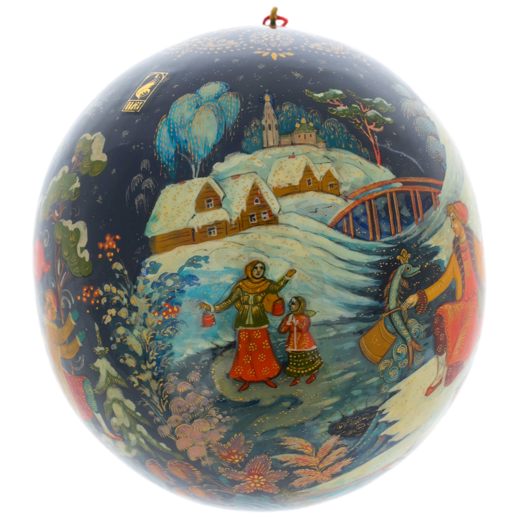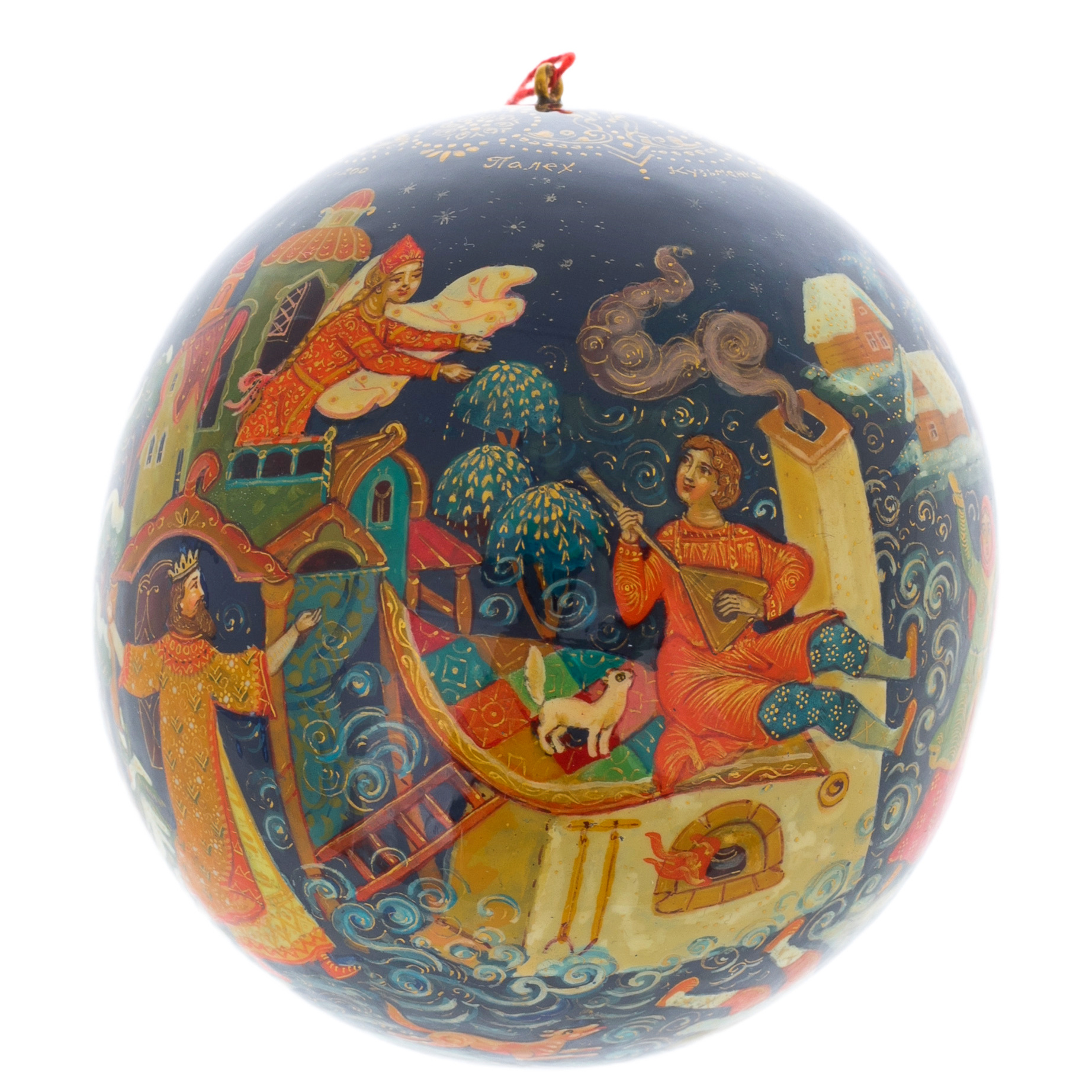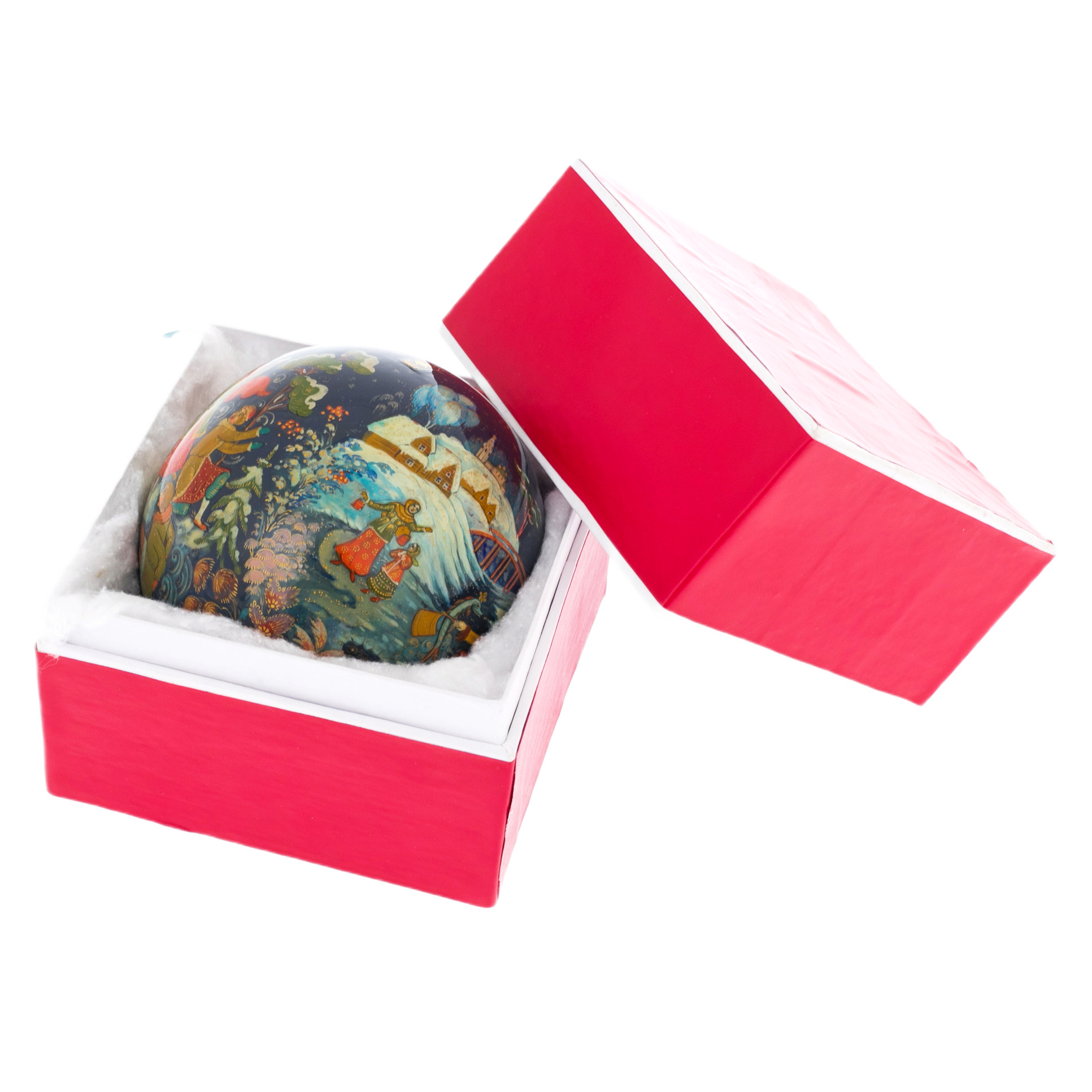 Тонкая работа мастеров, создавших этот шар, отражает не только их безупречный вкус, но и глубокое уважение к традициям русской культуры. Яркие цвета и изысканные узоры, вдохновлённые древними палехскими мотивами, создают неповторимую гармонию, способную украсить любой интерьер и стать центром притяжения взглядов. Каждая деталь, от плавных линий картинки до утончённых орнаментов, рассказывает историю о волшебных путешествиях и мечтах, которые сбываются в новогоднюю ночь.