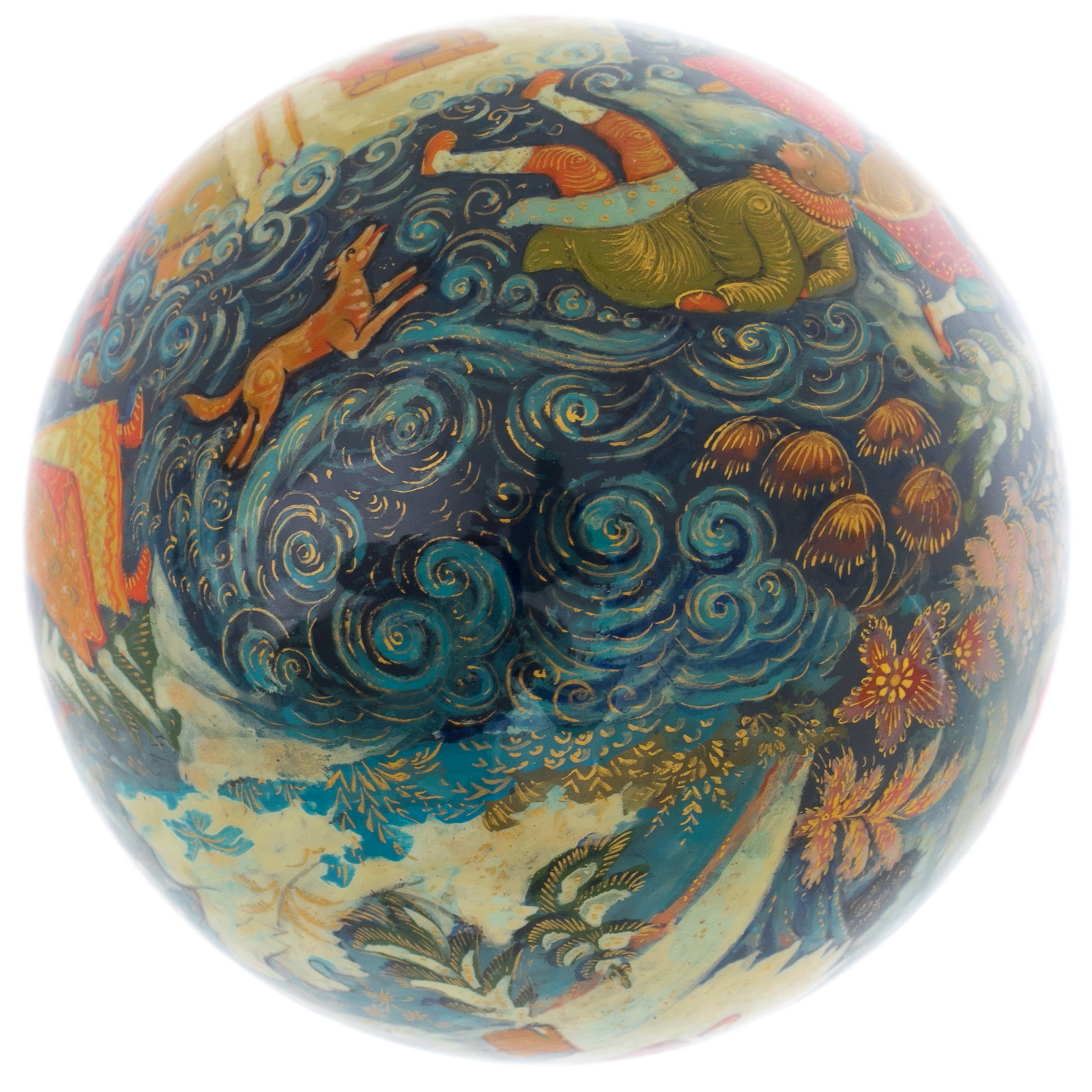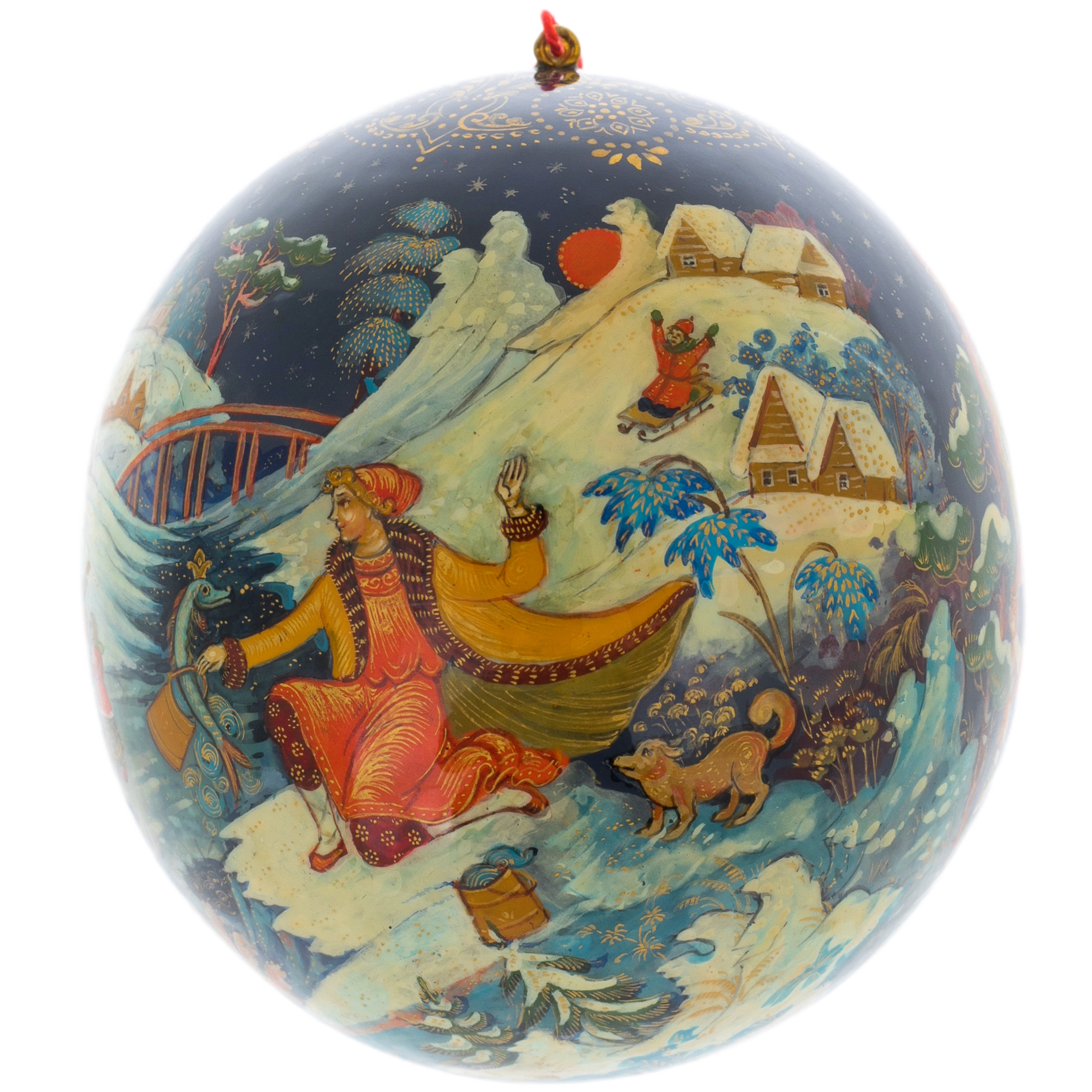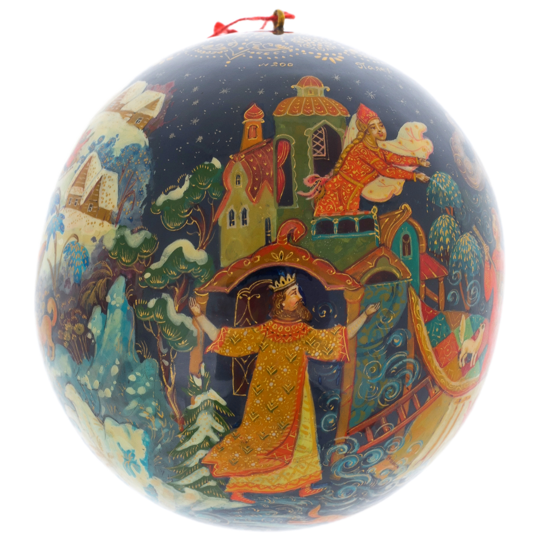 Тонкая работа мастеров, создавших этот шар, отражает не только их безупречный вкус, но и глубокое уважение к традициям русской культуры. Яркие цвета и изысканные узоры, вдохновлённые древними палехскими мотивами, создают неповторимую гармонию, способную украсить любой интерьер и стать центром притяжения взглядов. Каждая деталь, от плавных линий картинки до утончённых орнаментов, рассказывает историю о волшебных путешествиях и мечтах, которые сбываются в новогоднюю ночь.
