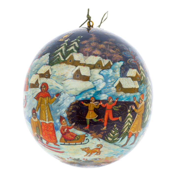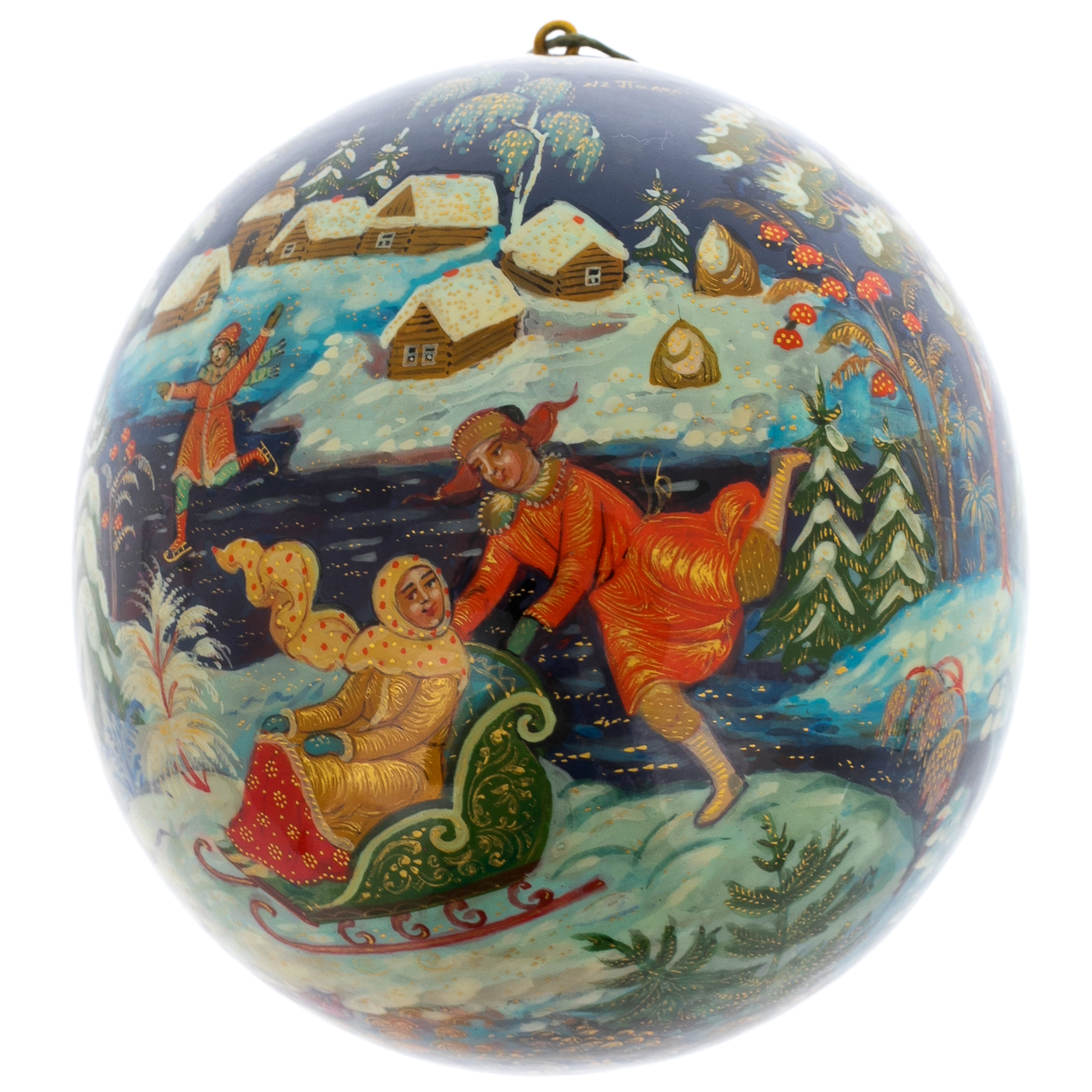 Шар ёлочный деревянный "Зимние забавы" Кузьменко, Палех