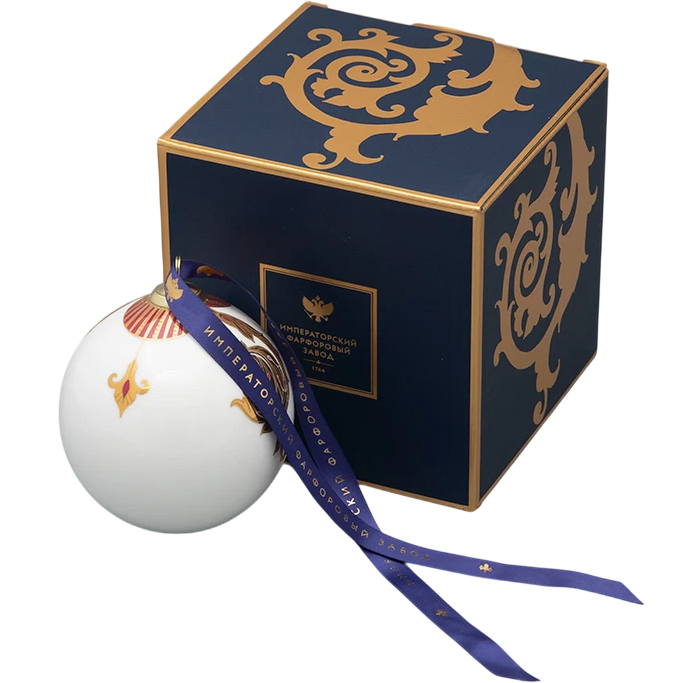 Шар «Рождественские узоры» представлен в фирменной подарочной упаковке с атласной лентой в комплекте.