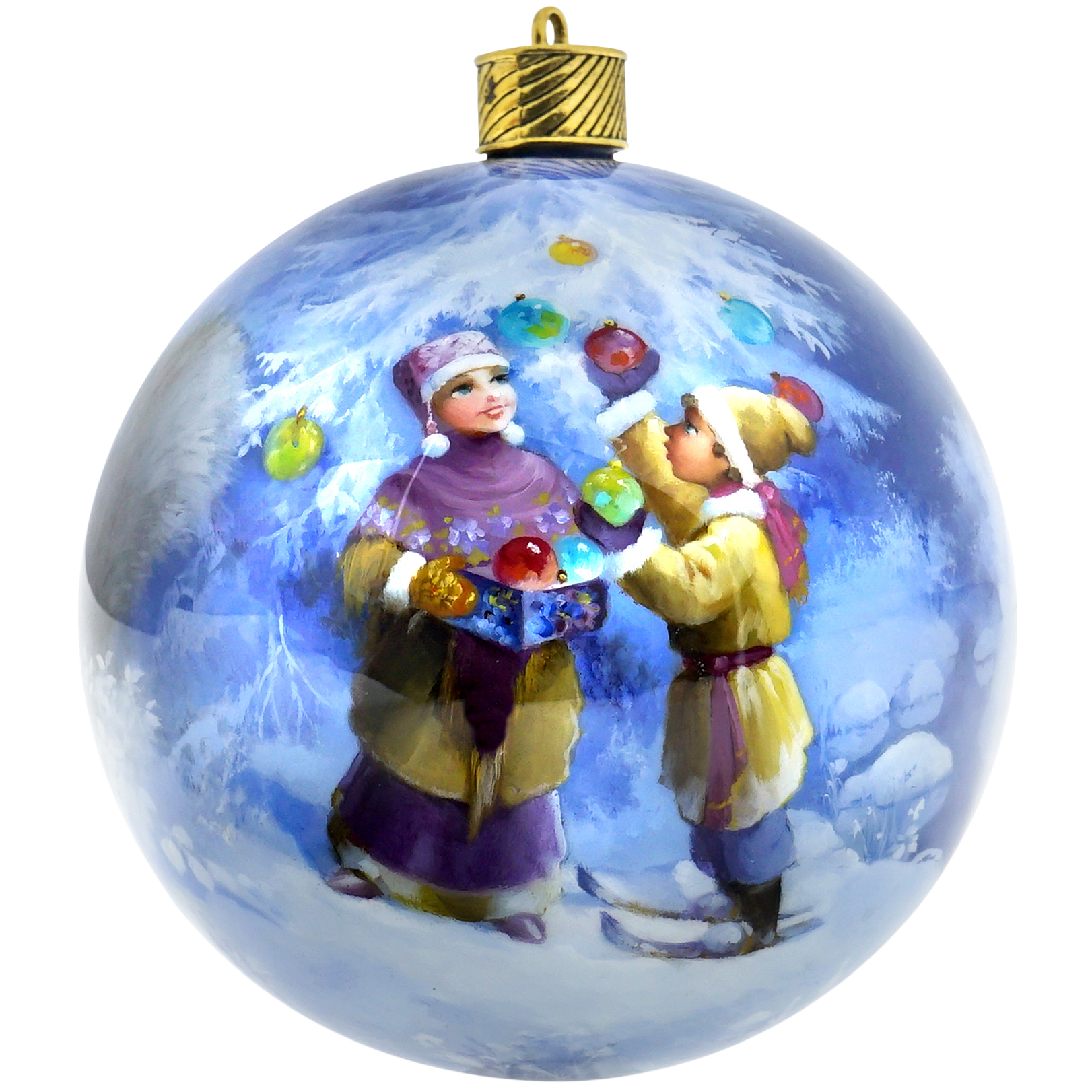 Новогодний шар, выполненный в стиле Федоскинской миниатюры, — это воплощение традиций и мастерства русских художников. Каждое изделие, созданное вручную, несёт в себе особую магию, где каждый штрих, каждый акцент тщательно продуман. Изящная форма шара, покрытая многослойной эмалью словно становится продолжением старинного искусства, восходящего к истокам русской росписи.