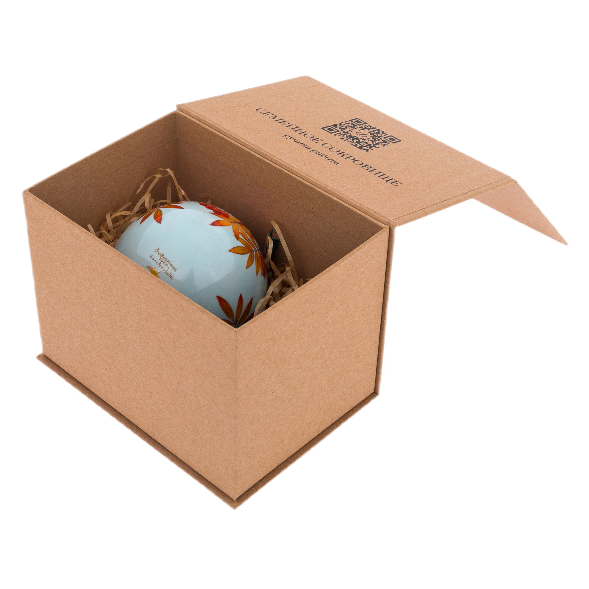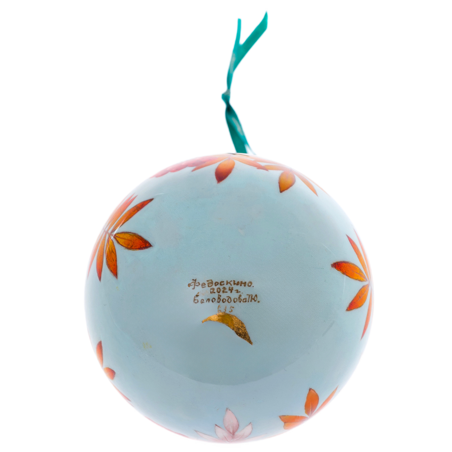 Каждая веточка рябины, каждый лист на этом произведении росписи — ручная работа мастера из Федоскино, старейшего центра лаковой миниатюры России. Федоскинская техника, уходящая корнями в XIX век, опирается на многослойное нанесение краски и игру света через полупрозрачные слои. Словно драгоценная шкатулка, этот шар сделан из папье-маше — легкого, но невероятно прочного материала, чьи свойства позволяют превращать каждое изделие в произведение искусства.