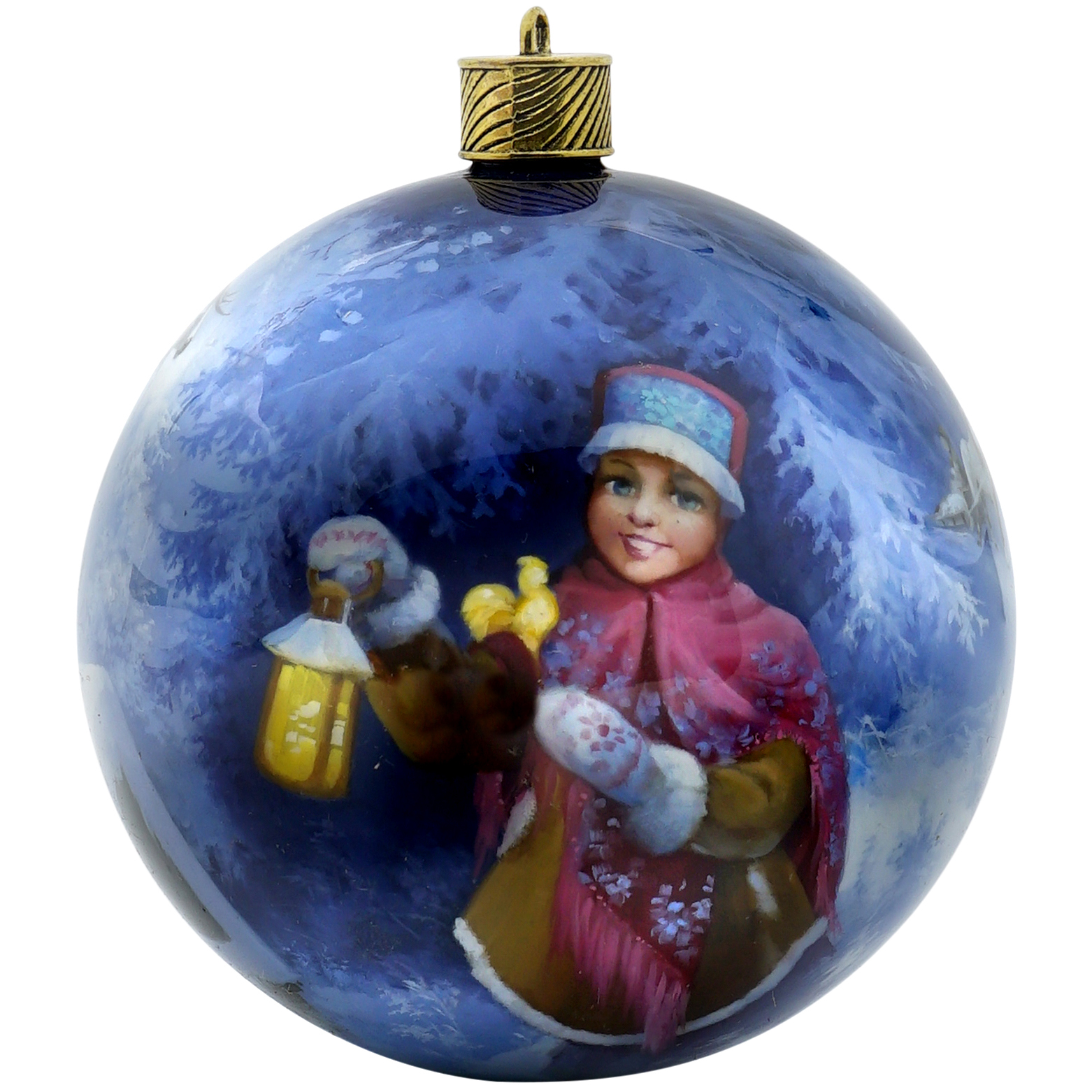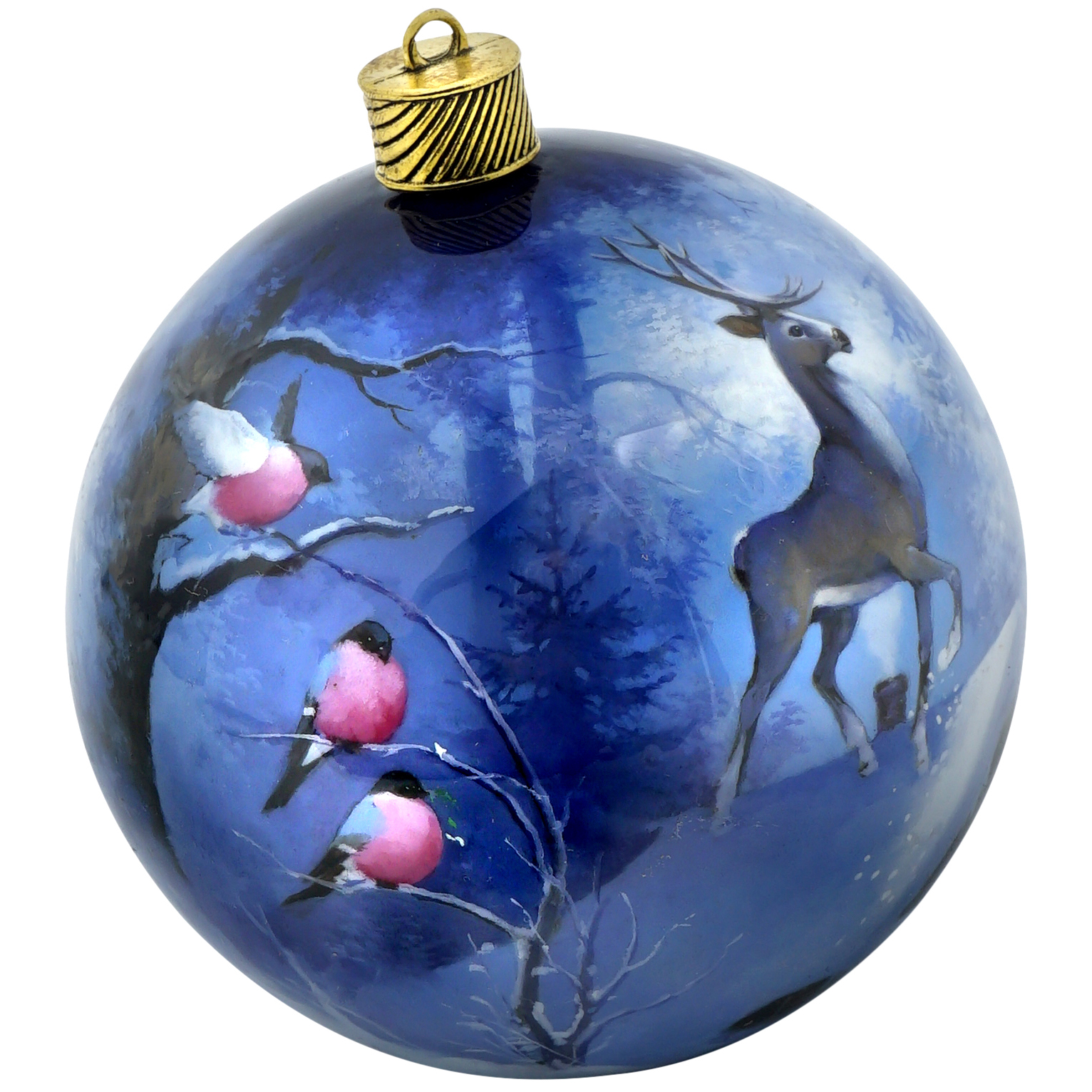 Новогодний шар, выполненный в стиле Федоскинской миниатюры, — это воплощение традиций и мастерства русских художников. Каждое изделие, созданное вручную, несёт в себе особую магию, где каждый штрих, каждый акцент тщательно продуман. Изящная форма шара, покрытая многослойной эмалью словно становится продолжением старинного искусства, восходящего к истокам русской росписи.