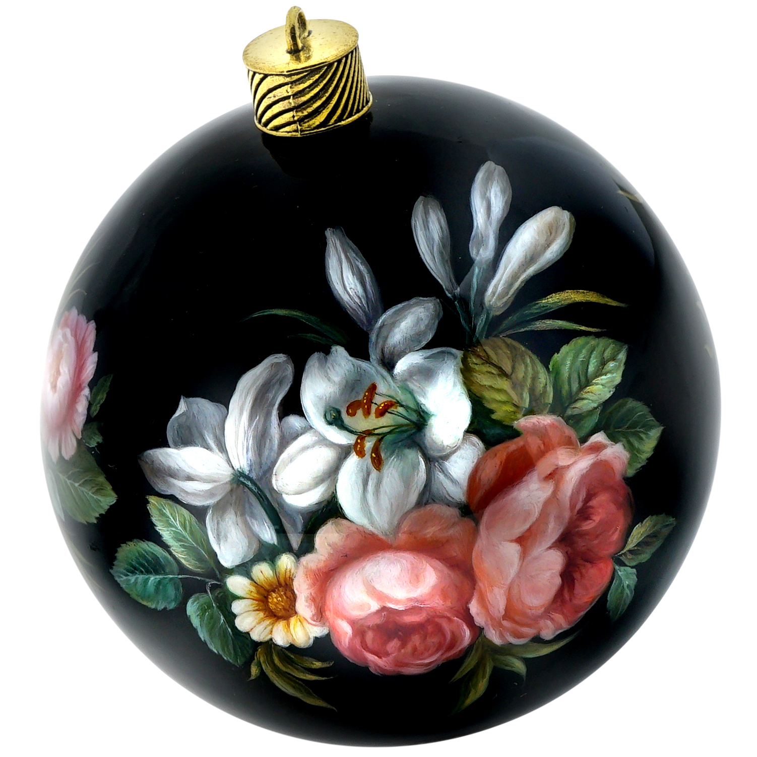 Новогодний шар, выполненный в стиле Федоскинской миниатюры, — это воплощение традиций и мастерства русских художников. Каждое изделие, созданное вручную, несёт в себе особую магию, где каждый штрих, каждый акцент тщательно продуман. Изящная форма шара, покрытая многослойной эмалью словно становится продолжением старинного искусства, восходящего к истокам русской росписи.
