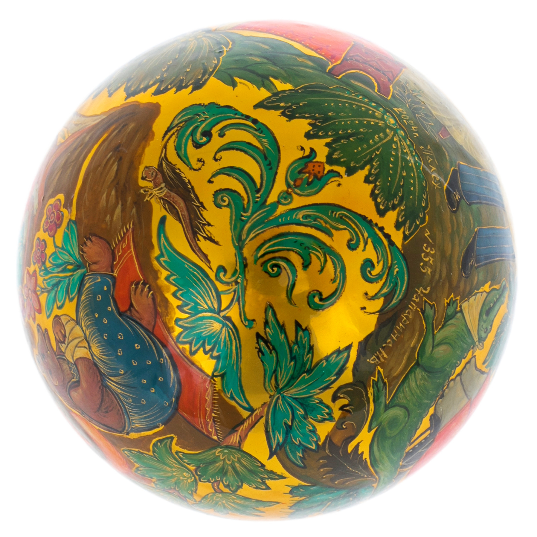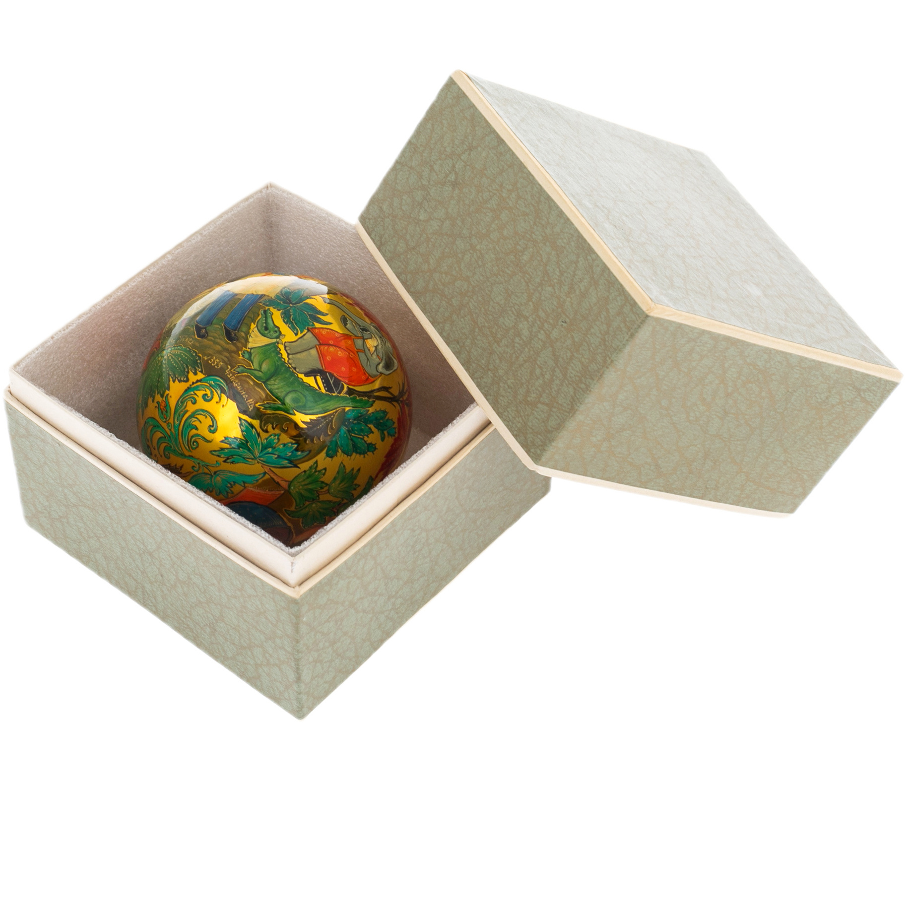 Тонкая работа мастеров, создавших этот шар, отражает не только их безупречный вкус, но и глубокое уважение к традициям русской культуры. Яркие цвета и изысканные узоры, вдохновлённые древними палехскими мотивами, создают неповторимую гармонию, способную украсить любой интерьер и стать центром притяжения взглядов. Каждая деталь, от плавных линий картинки до утончённых орнаментов, рассказывает историю о волшебных путешествиях и мечтах, которые сбываются в новогоднюю ночь.