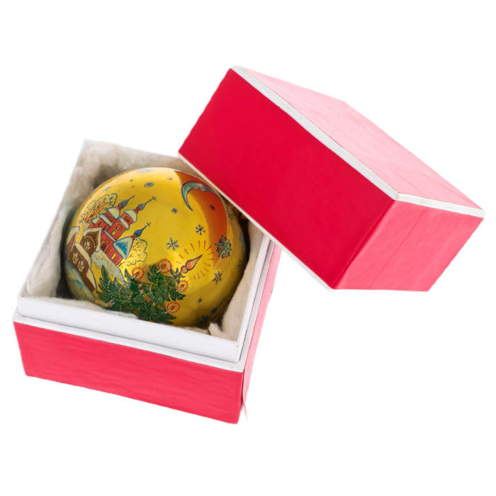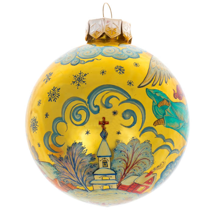 Тонкая работа мастеров, создавших этот шар, отражает не только их безупречный вкус, но и глубокое уважение к традициям русской культуры. Яркие цвета и изысканные узоры, вдохновлённые древними палехскими мотивами, создают неповторимую гармонию, способную украсить любой интерьер и стать центром притяжения взглядов. Каждая деталь, от плавных линий картинки до утончённых орнаментов, рассказывает историю о волшебных путешествиях и мечтах, которые сбываются в новогоднюю ночь.