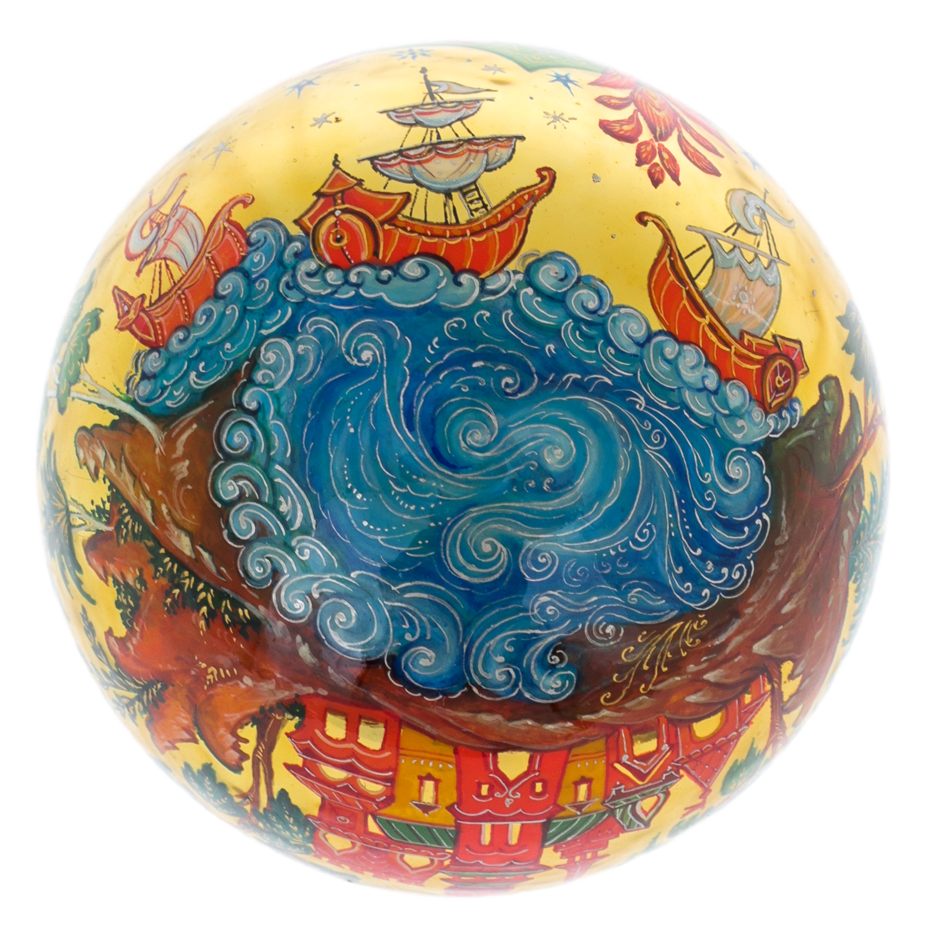 Тонкая работа мастеров, создавших этот шар, отражает не только их безупречный вкус, но и глубокое уважение к традициям русской культуры. Яркие цвета и изысканные узоры, вдохновлённые древними палехскими мотивами, создают неповторимую гармонию, способную украсить любой интерьер и стать центром притяжения взглядов. Каждая деталь, от плавных линий картинки до утончённых орнаментов, рассказывает историю о волшебных путешествиях и мечтах, которые сбываются в новогоднюю ночь.