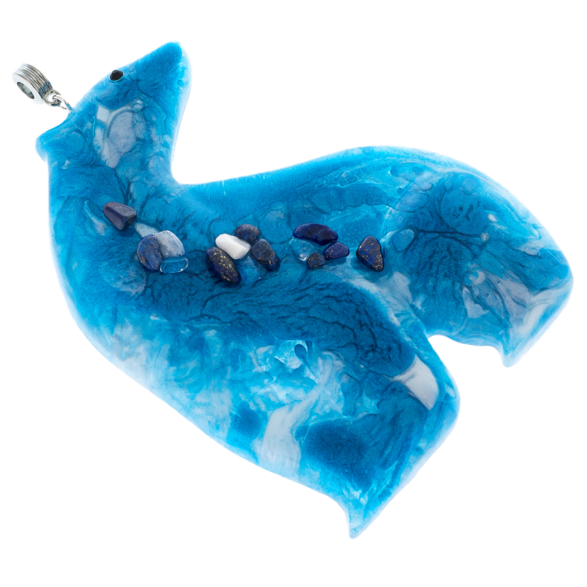 Фигурка медведя из ювелирной смолы с содалитом — это воплощение утонченности и природной силы. Голубой оттенок, напоминающий ледяные арктические просторы, символизирует силу и мудрость, которые неуклонно следуют за могучим хищником. Его образ кажется сотканным из самой природы, а вкрапления драгоценных минералов, таких как содалит, добавляют изысканности и уникальности каждой детали. В этой игрушке нет ничего случайного: каждый элемент тщательно подобран, чтобы передать красоту и энергию природных стихий.