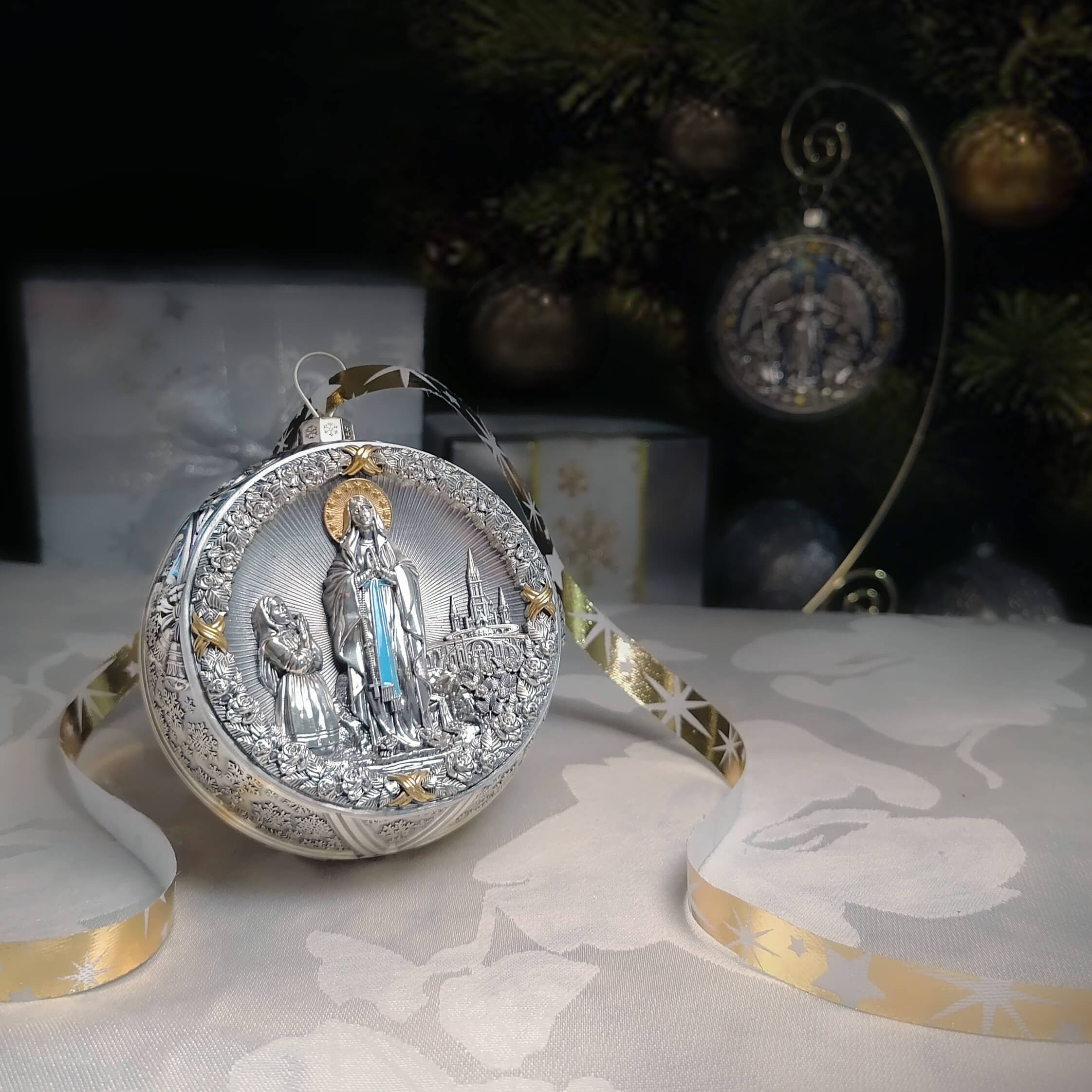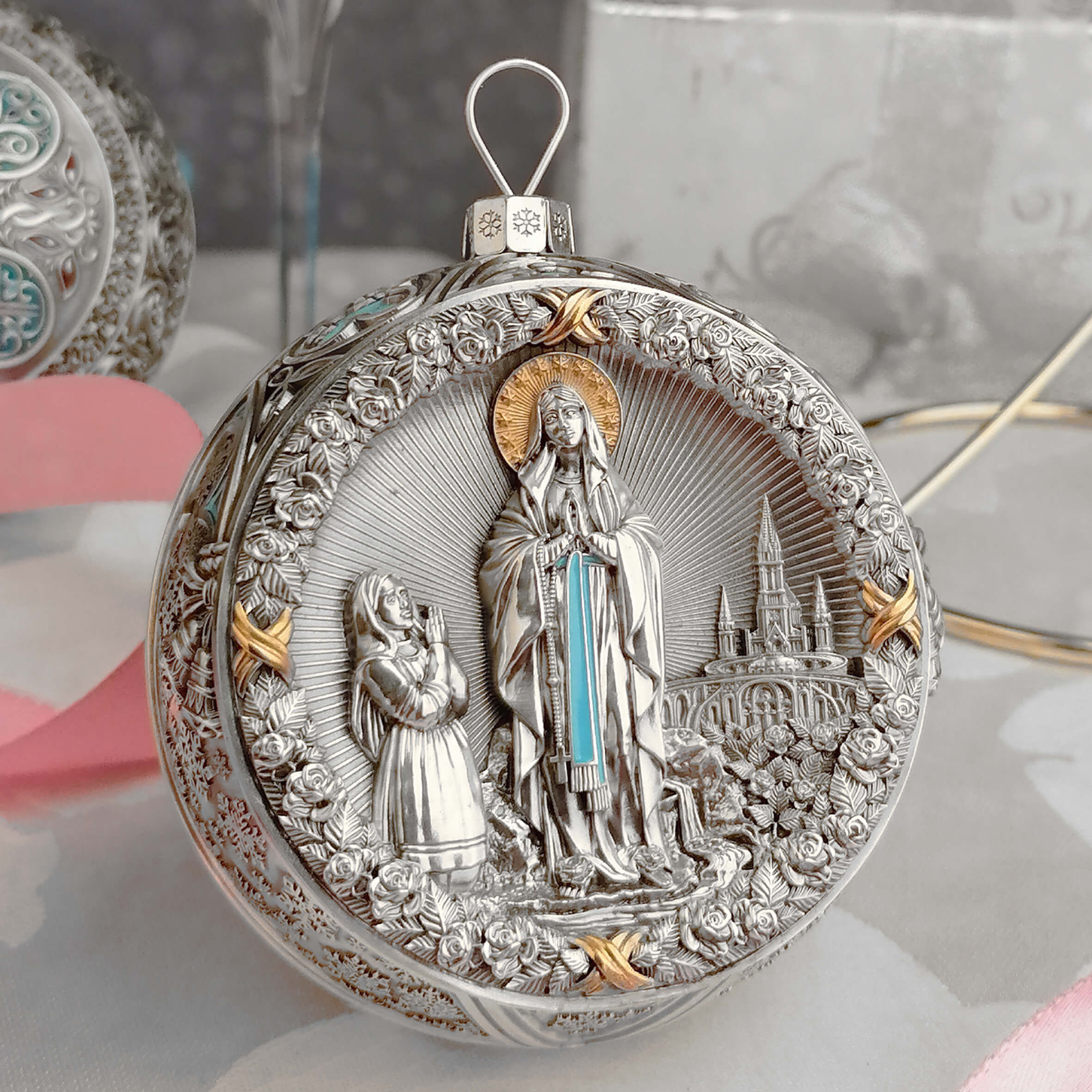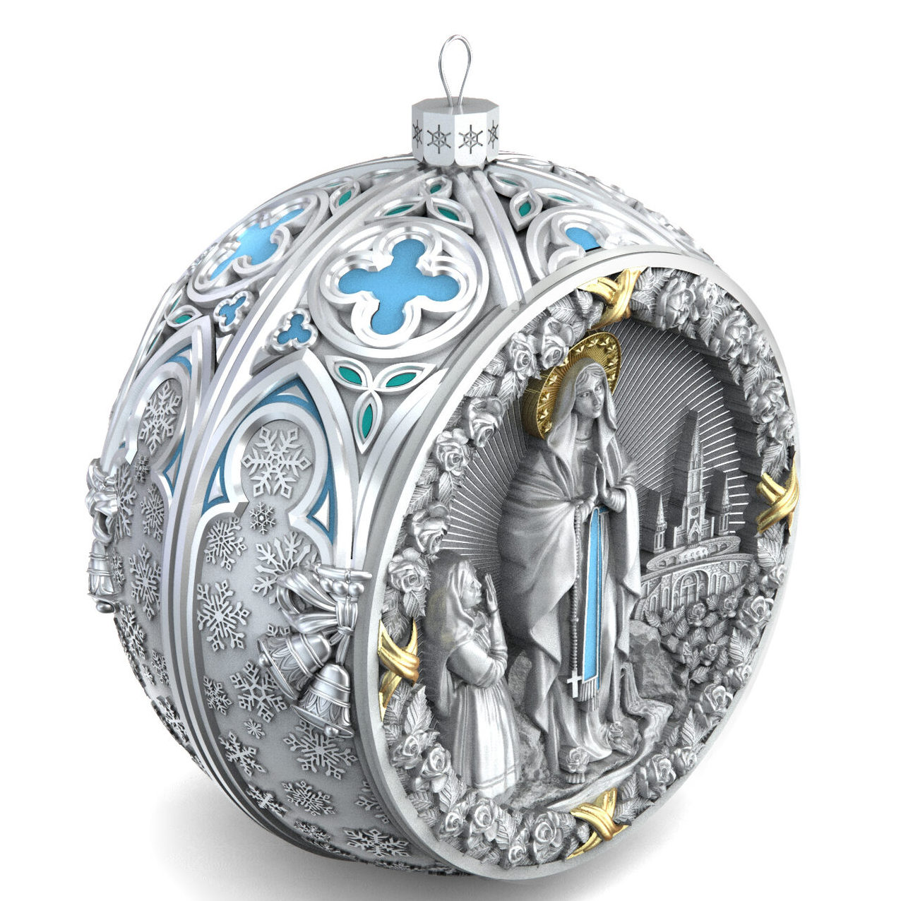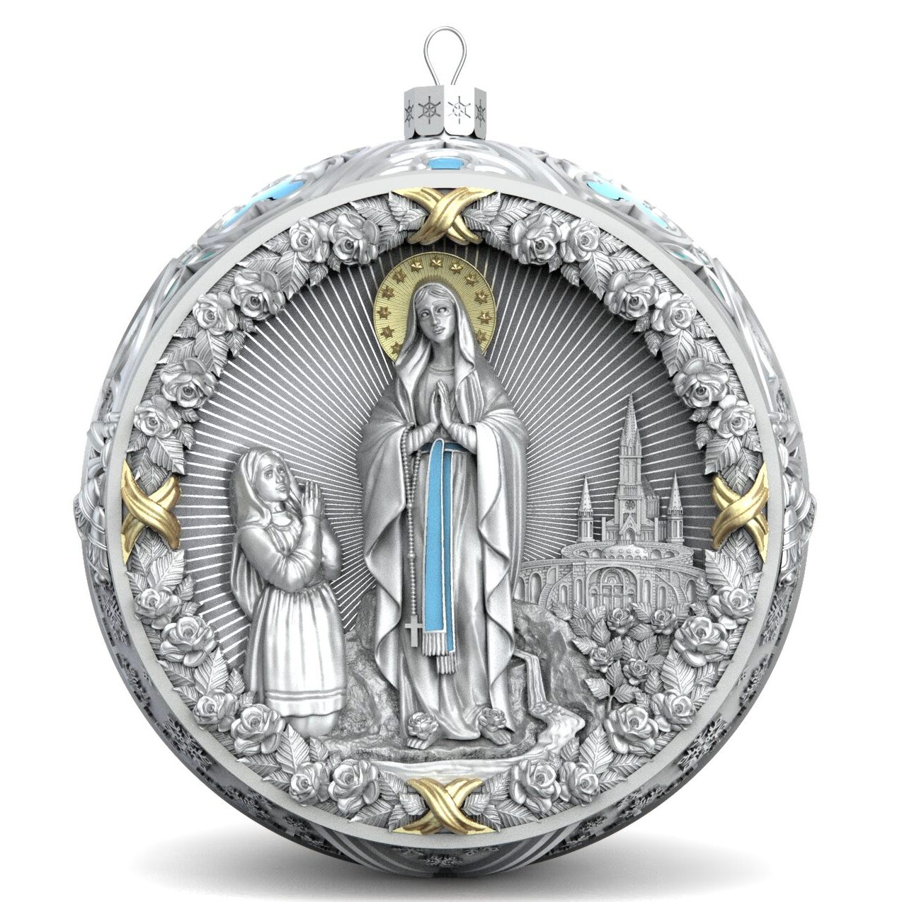 Серебряный елочный шар "Мадонна" с позолотой и эмалью