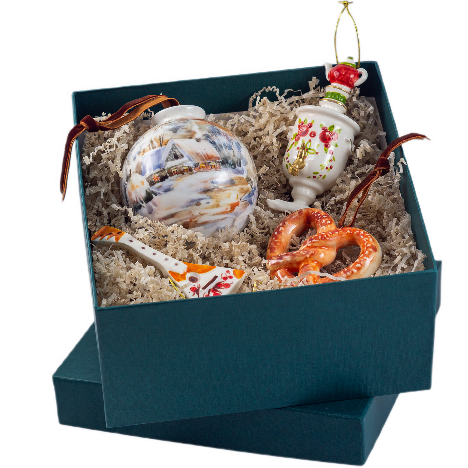 Набор елочных игрушек из фарфора "Русская зима" 4 шт