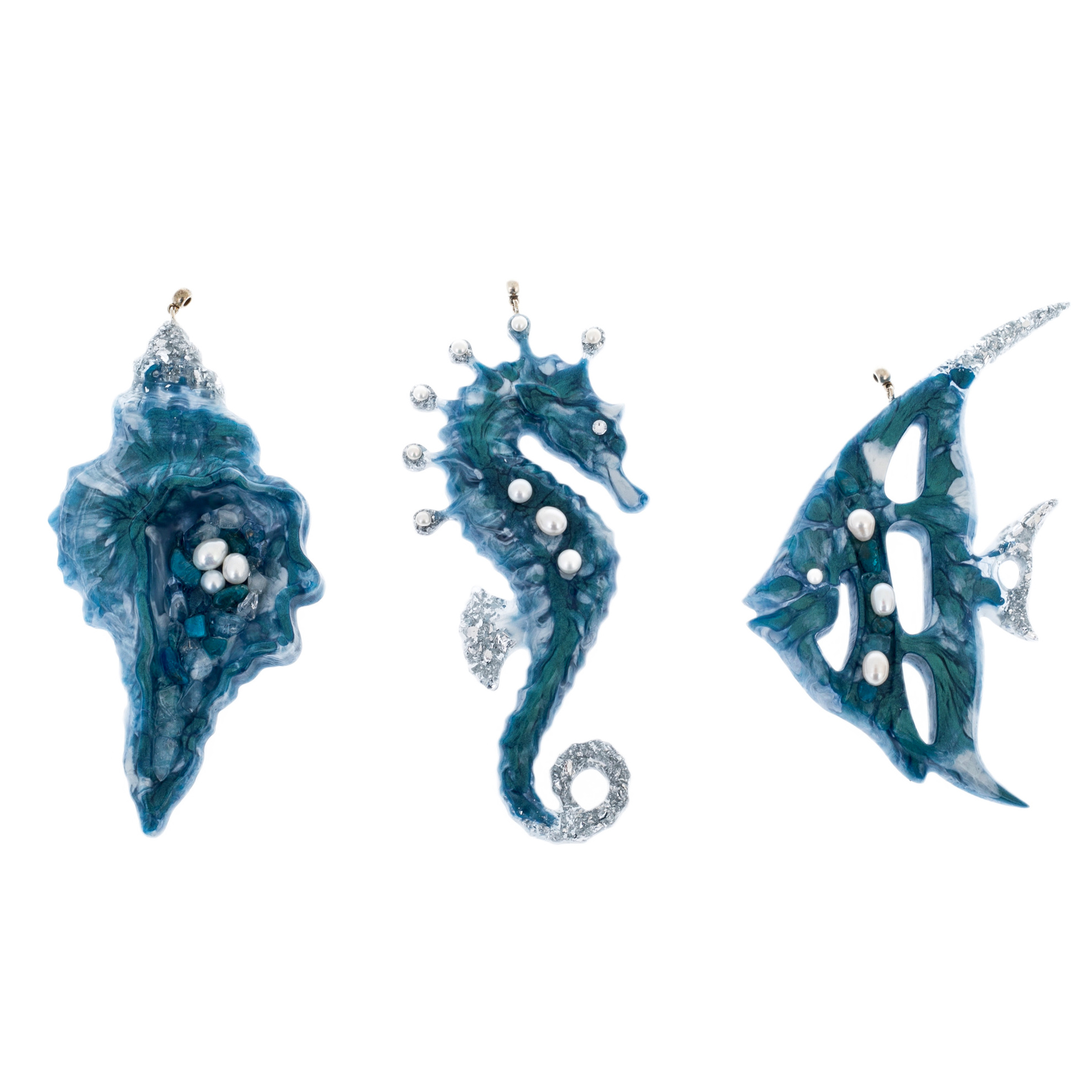 Набор елочных игрушек из содалита и смолы "Морской" 3 шт