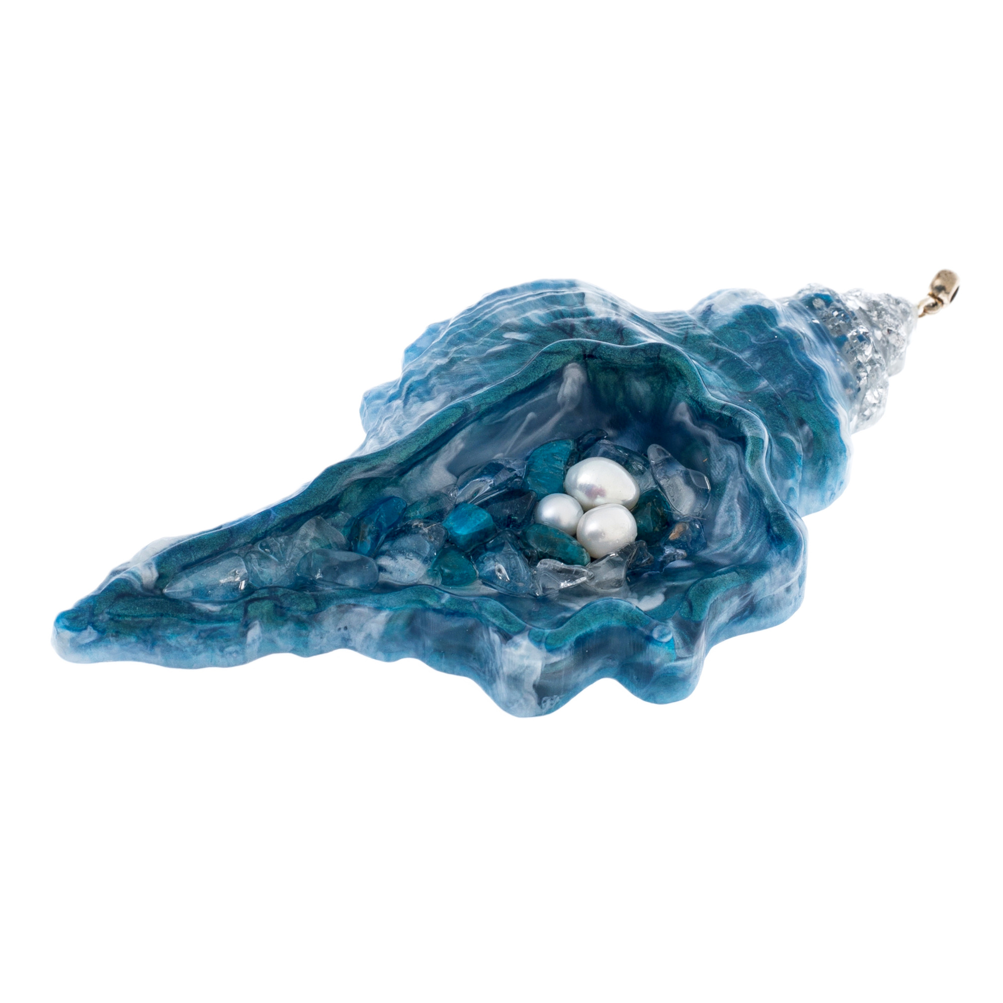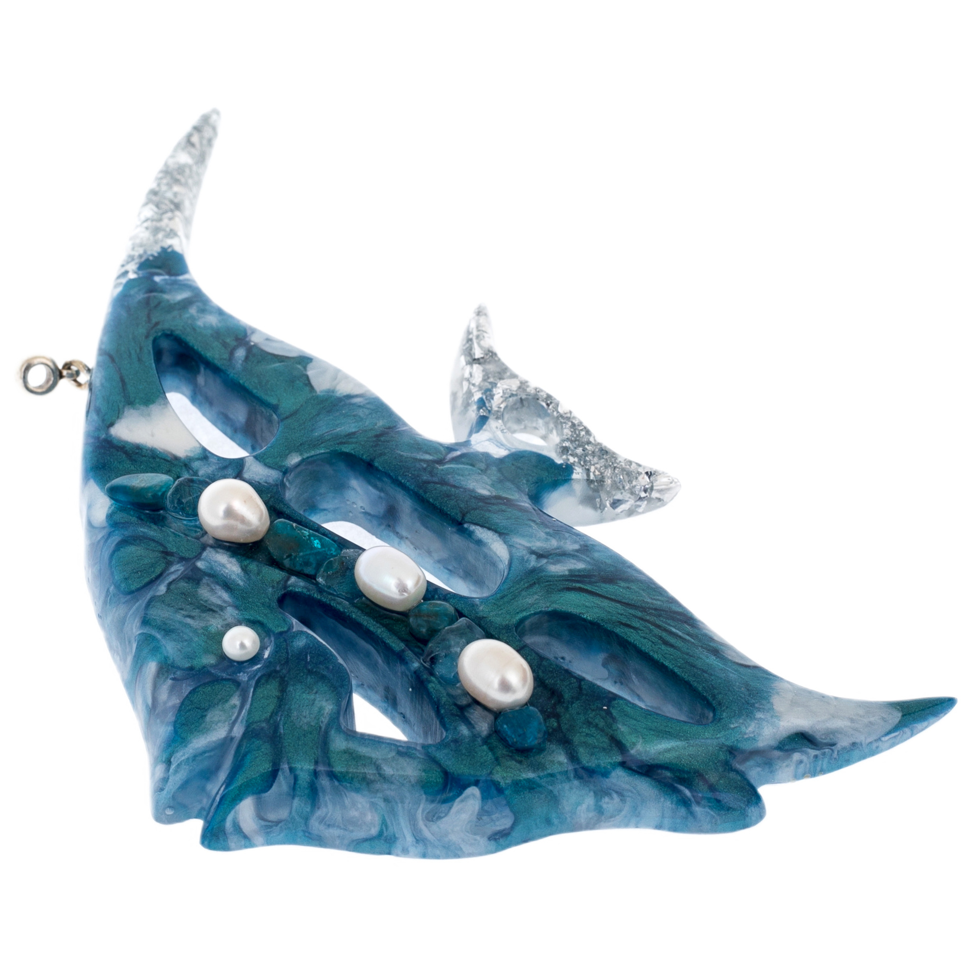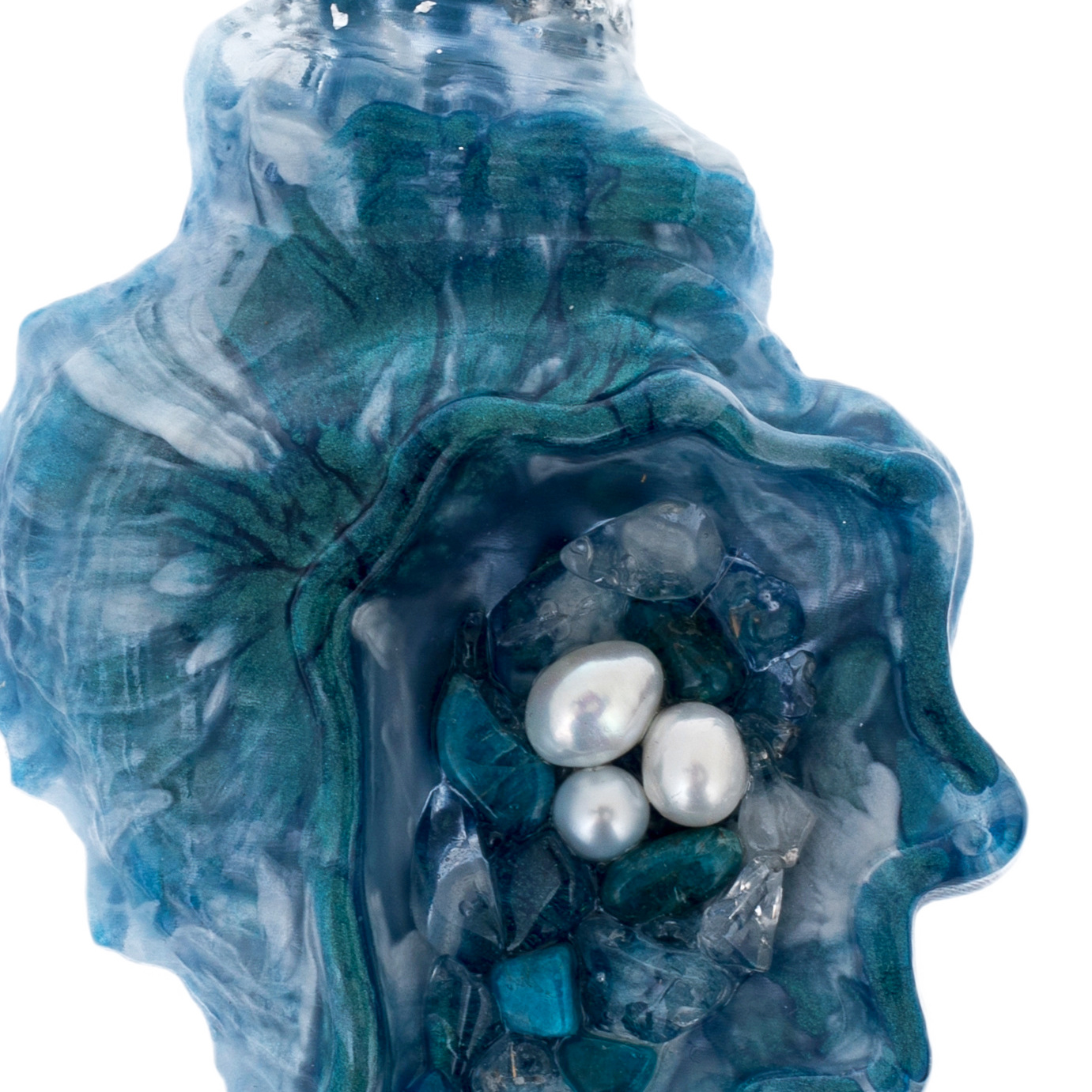 Содалит придаёт композиции оттенки морской синевы и тайну глубин, а жемчуг и блестящие вкрапления создают эффект подводного света, отражённого на кораллах. В этих игрушках ощущается движение — лёгкое, текучее, как сама вода.