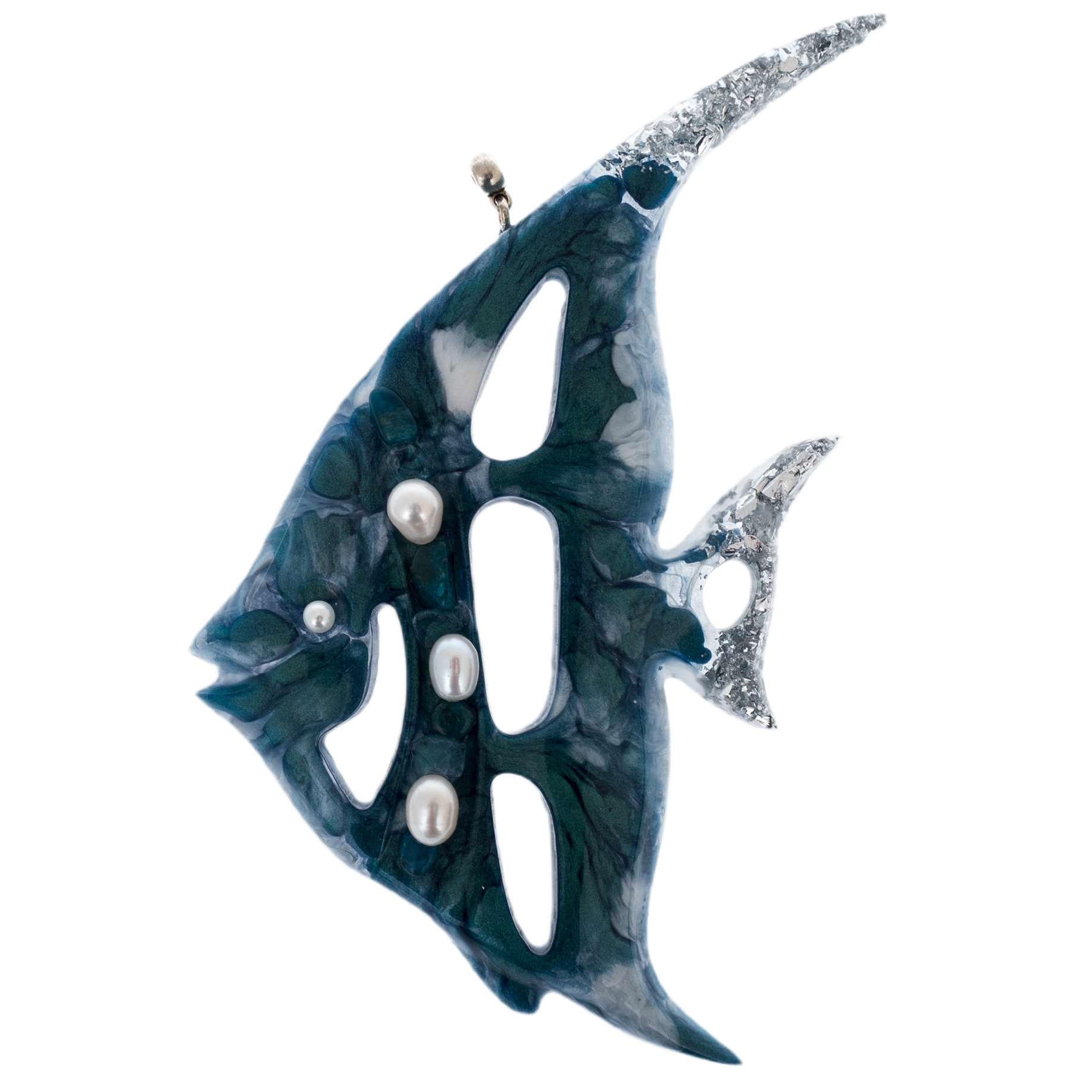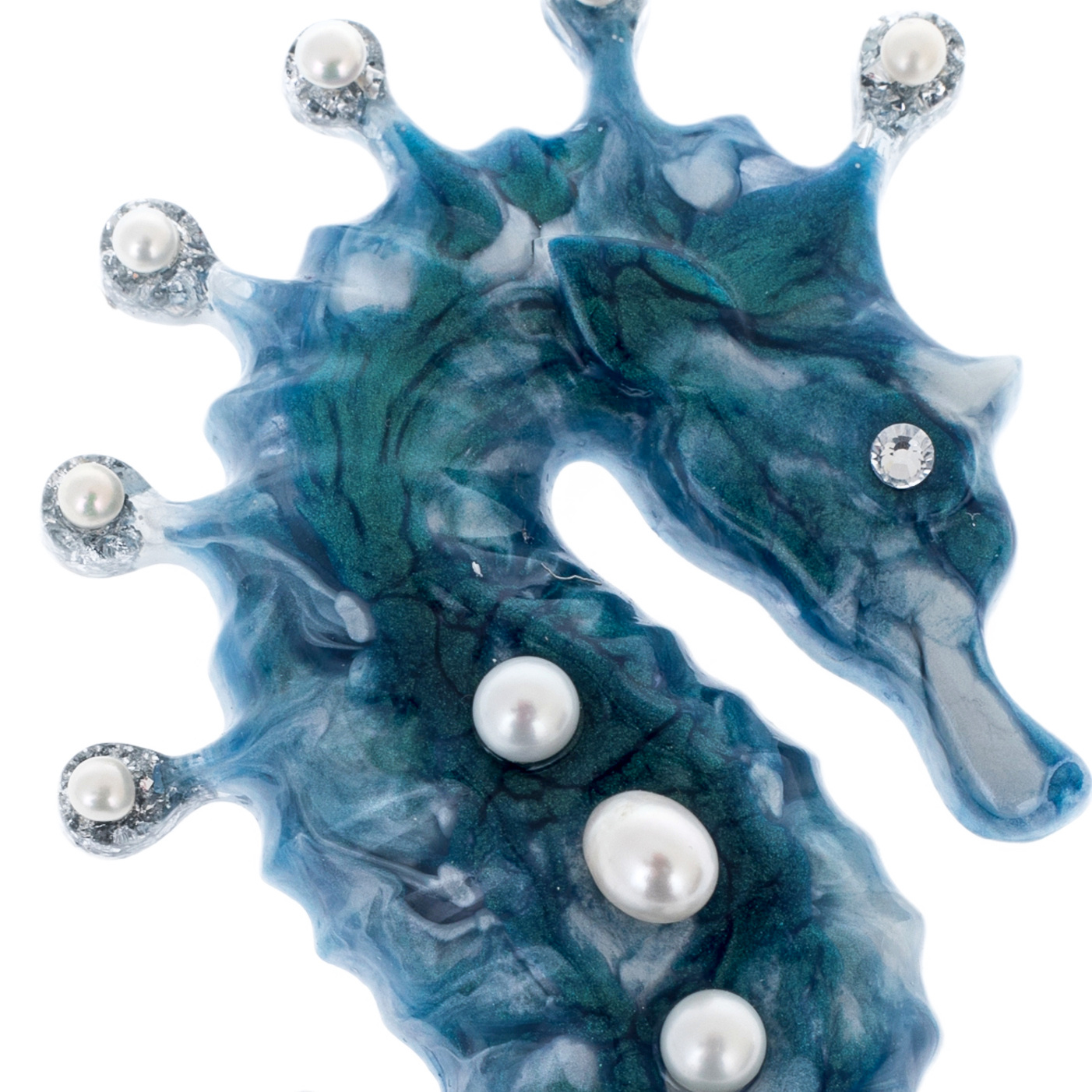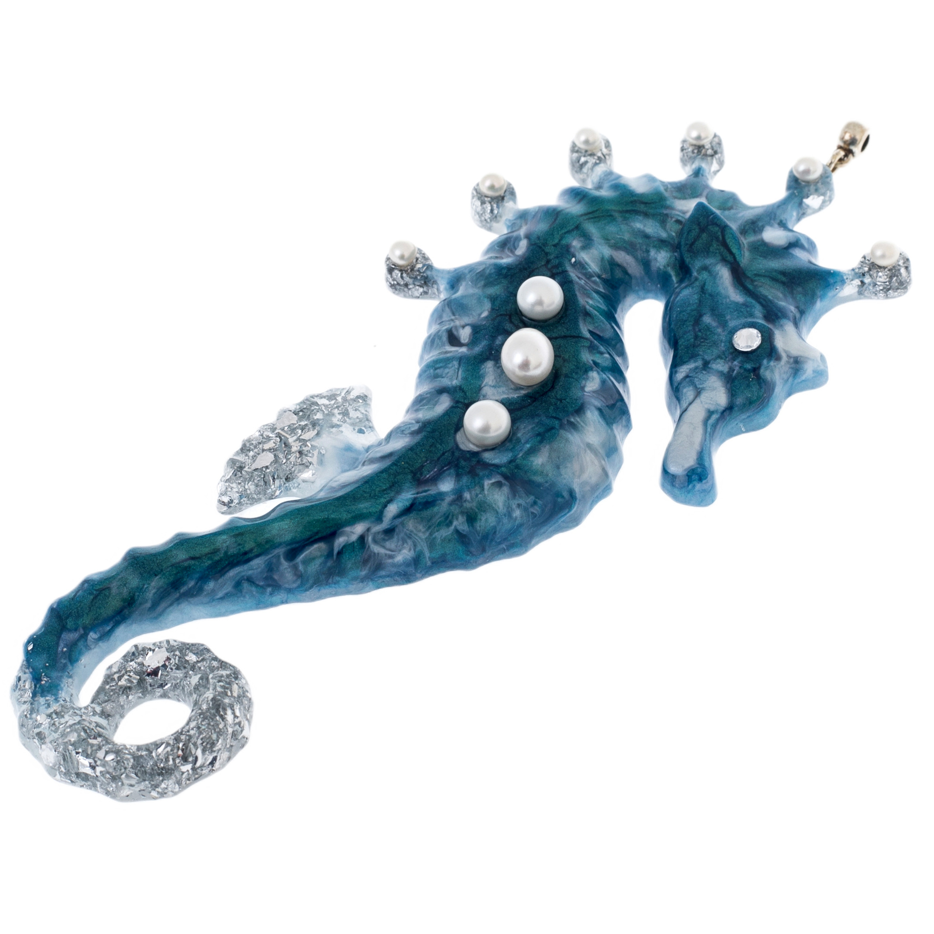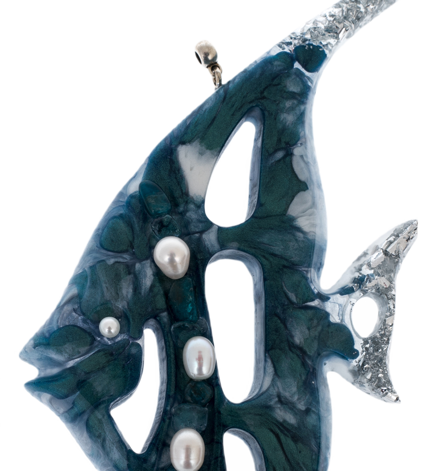 Содалит придаёт композиции оттенки морской синевы и тайну глубин, а жемчуг и блестящие вкрапления создают эффект подводного света, отражённого на кораллах. В этих игрушках ощущается движение — лёгкое, текучее, как сама вода.