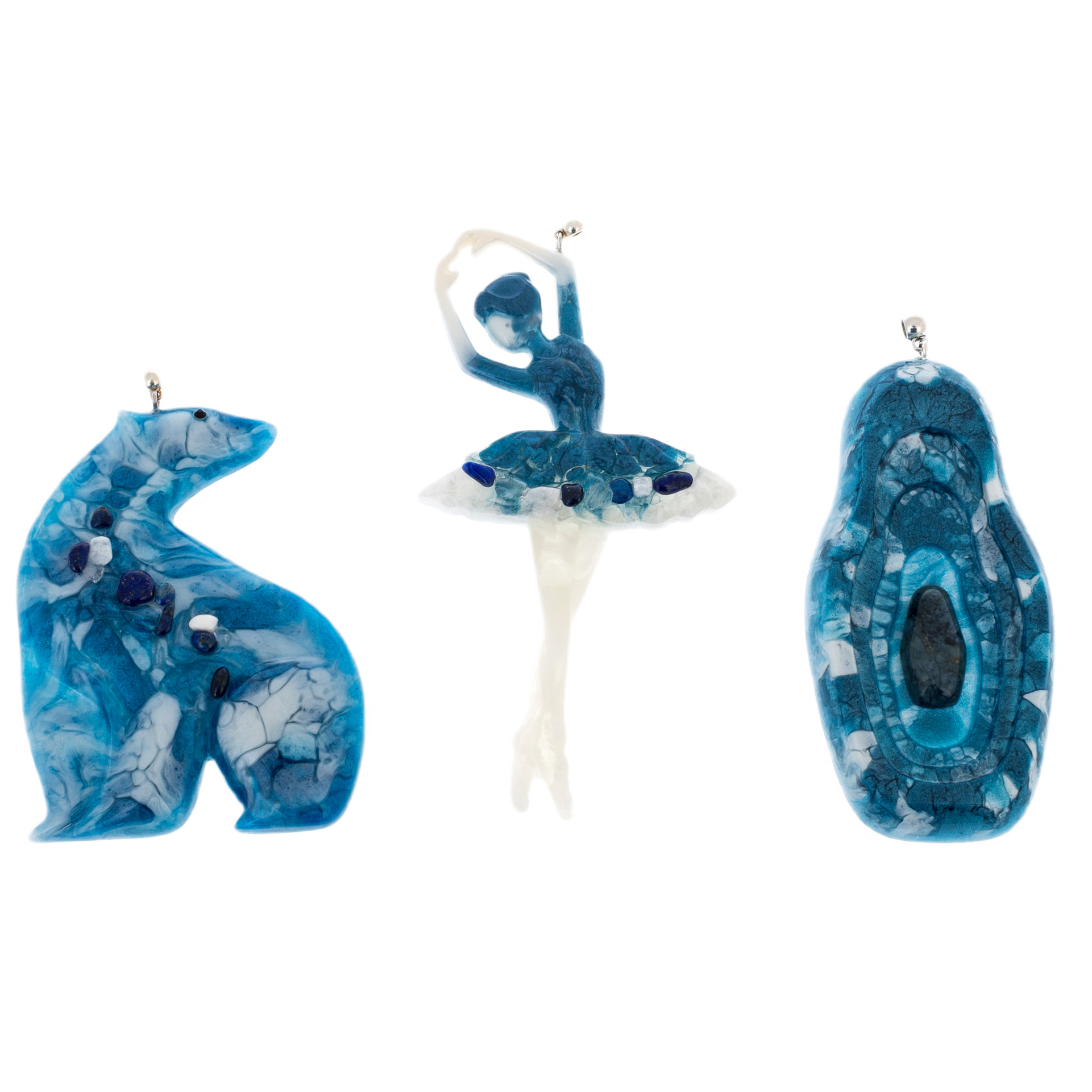 Набор елочных игрушек из содалита и смолы "Русский сет" 3 шт