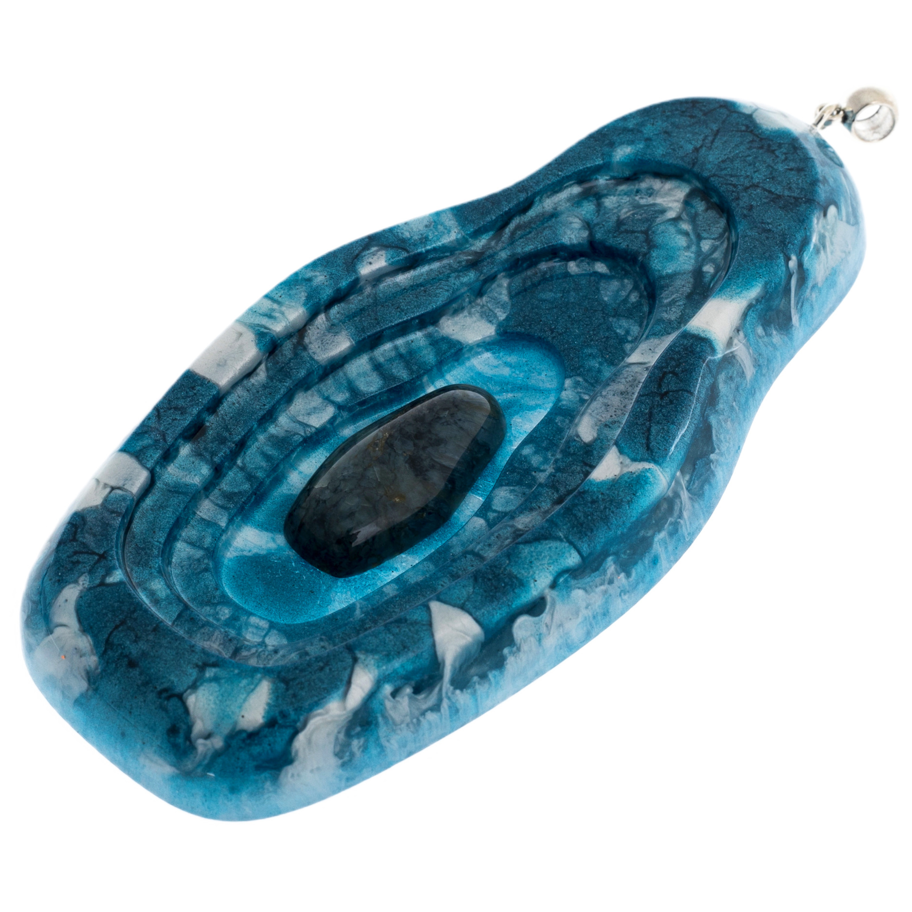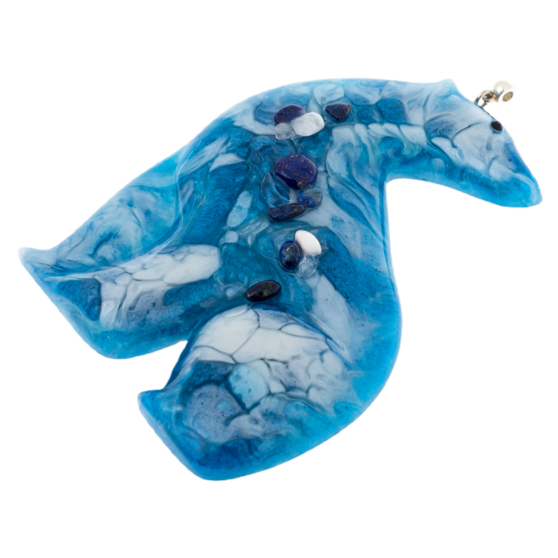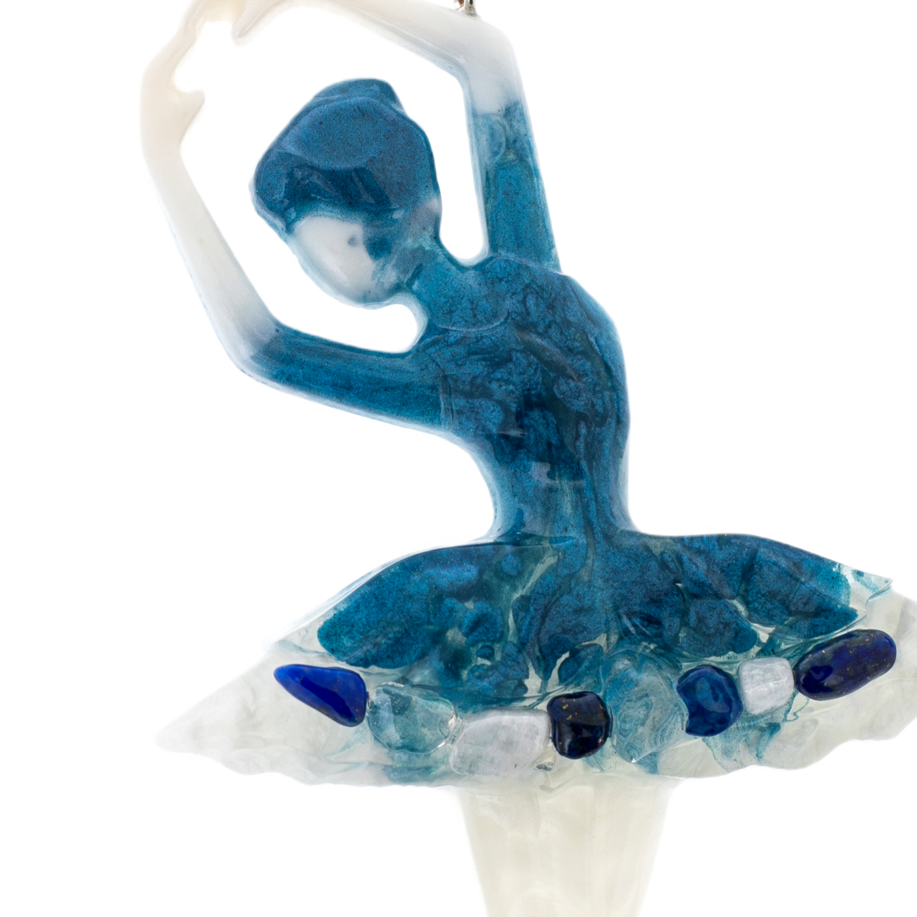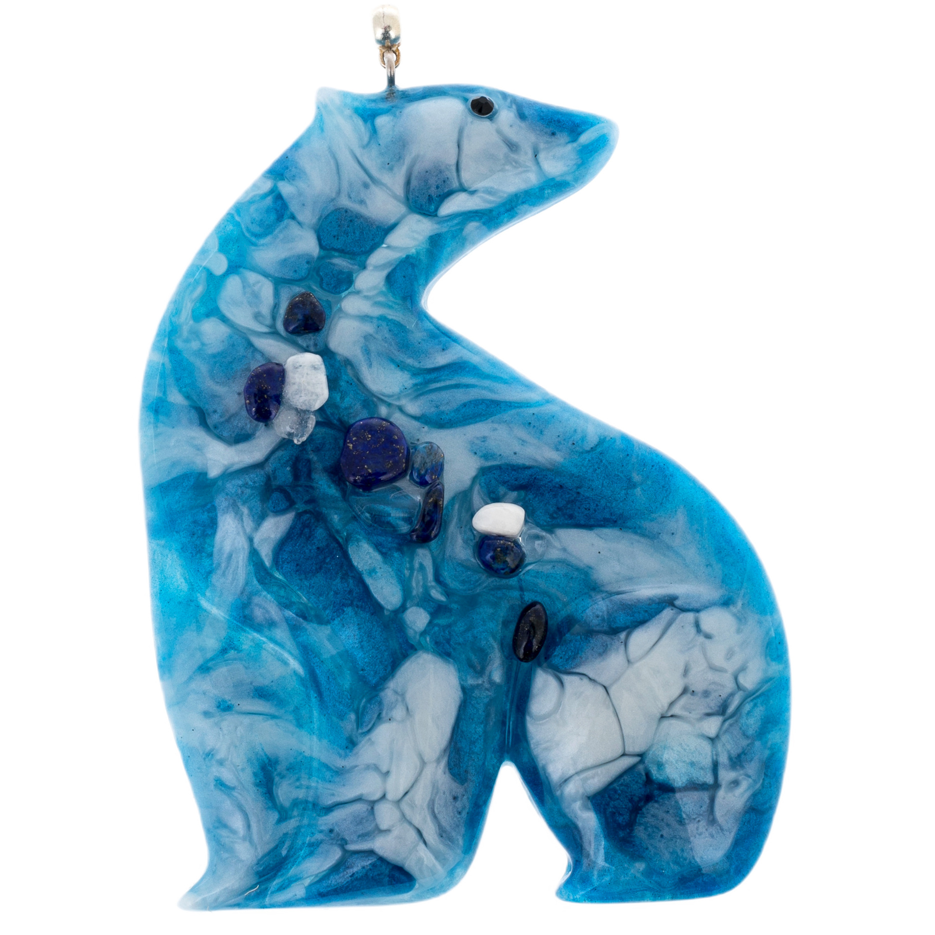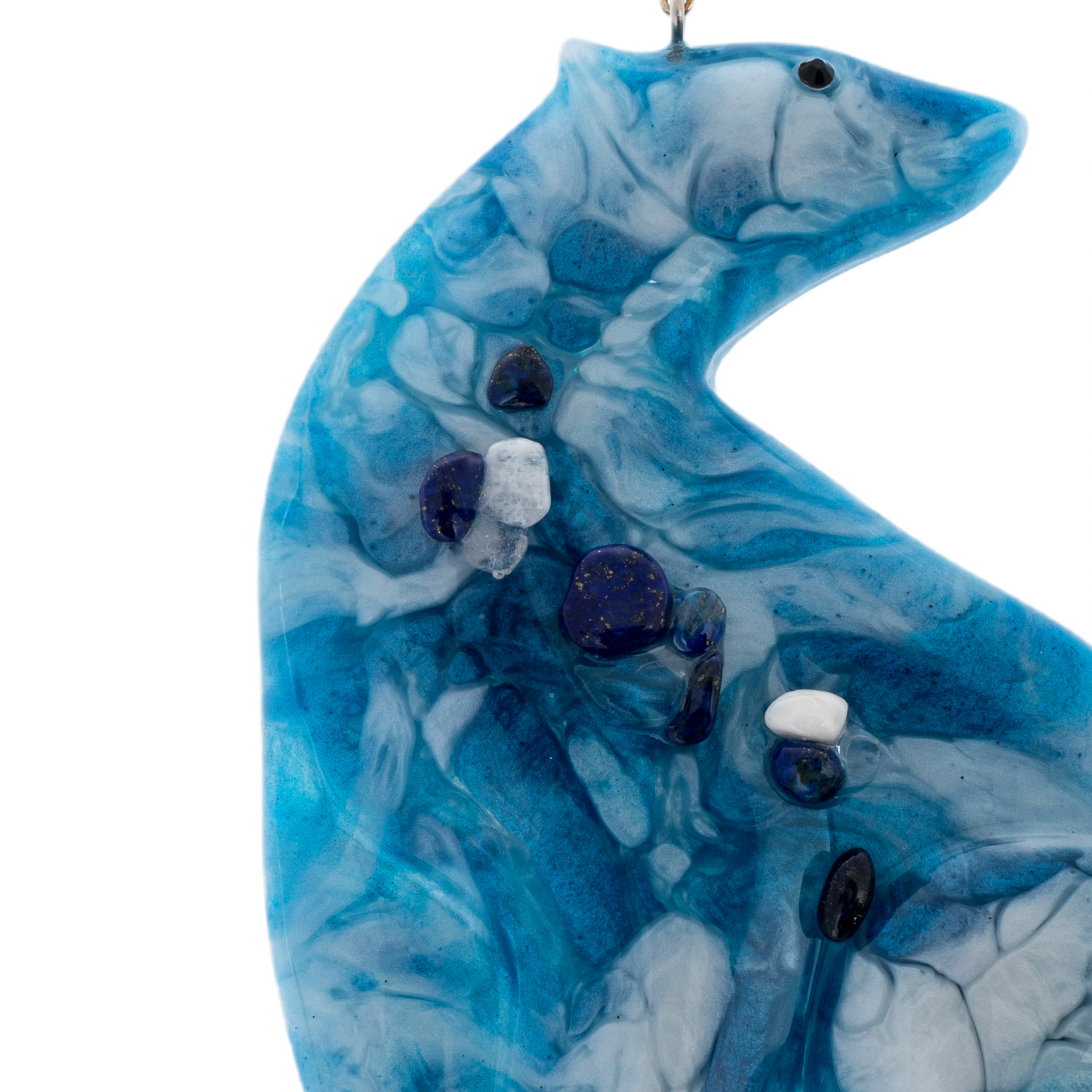 Содалит в сочетании с прозрачной смолой создаёт эффект таинственного сияния льда — будто сами зимние морозы вдохнули жизнь в эти миниатюрные шедевры. Голубые и молочные переливы напоминают о заснеженных просторах, чистом небе и кристальной тишине зимнего утра.