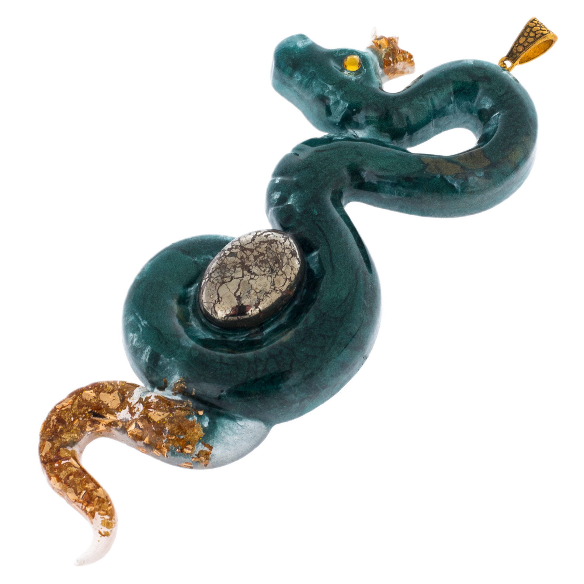 В знак уважения к этому могущественному символу мы создали эксклюзивную ёлочную игрушку Змея, вручную выполненную из ювелирной смолы. Кабошон пирита, великолепно вписывающийся в дизайн игрушки, символизирует земную мудрость и стабильность, а кристалл Swarovski, имитирующий глаз змеи, добавляет изделию магического блеска и загадочности.
