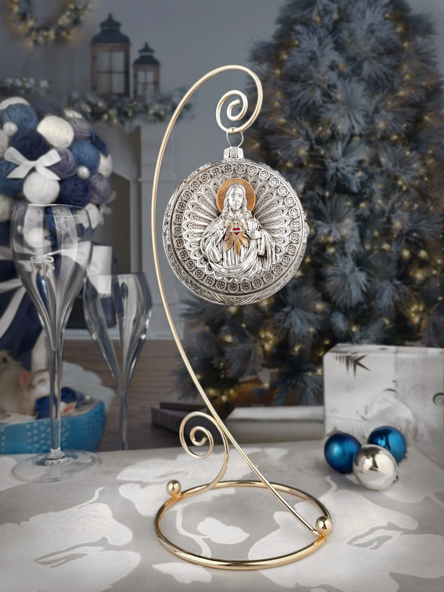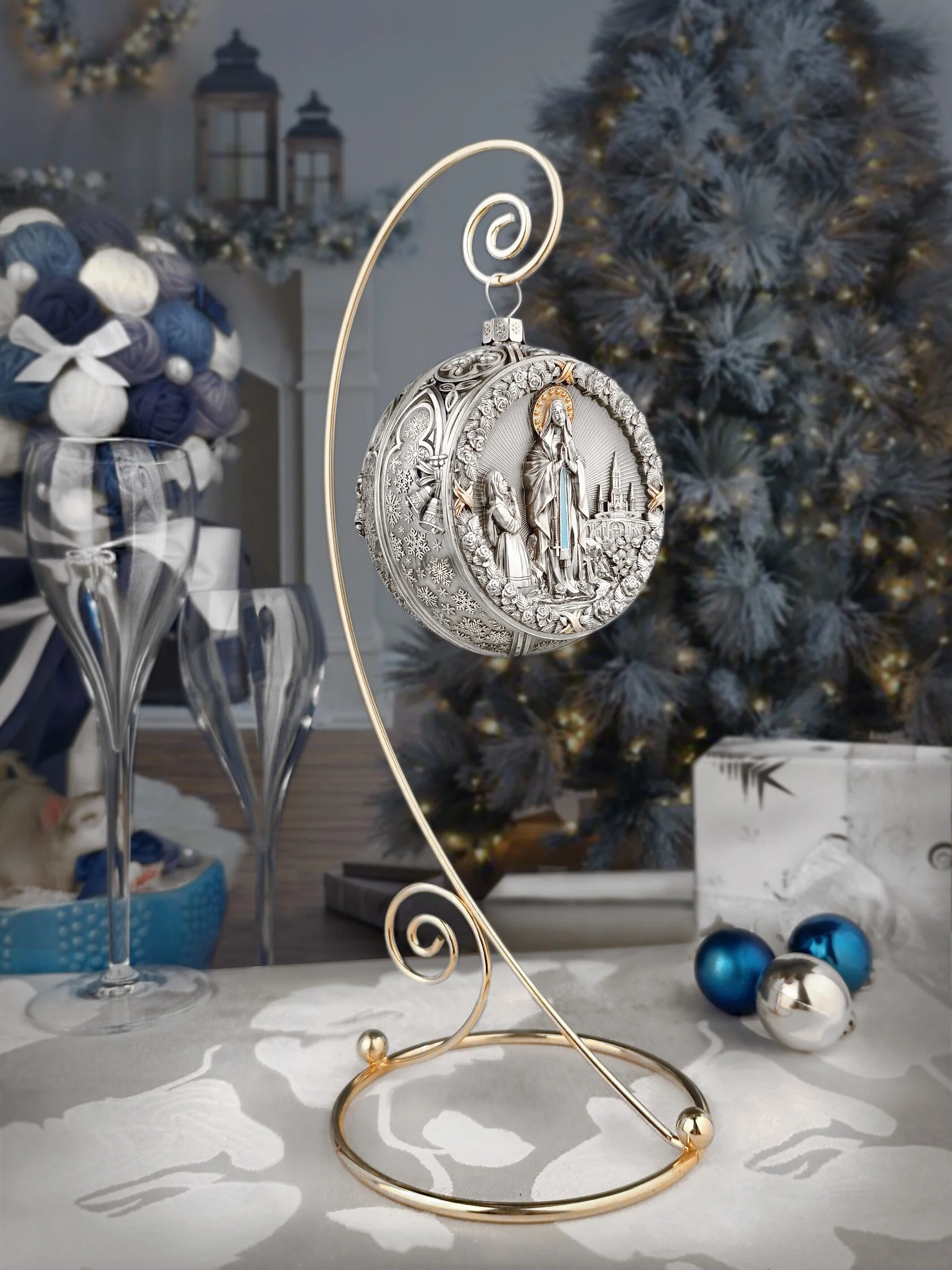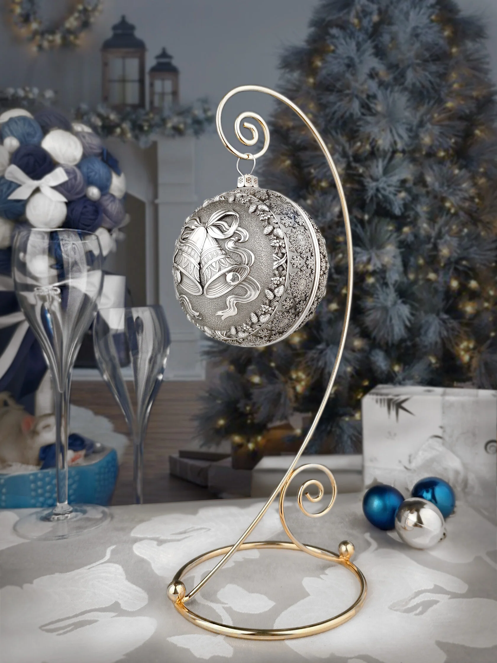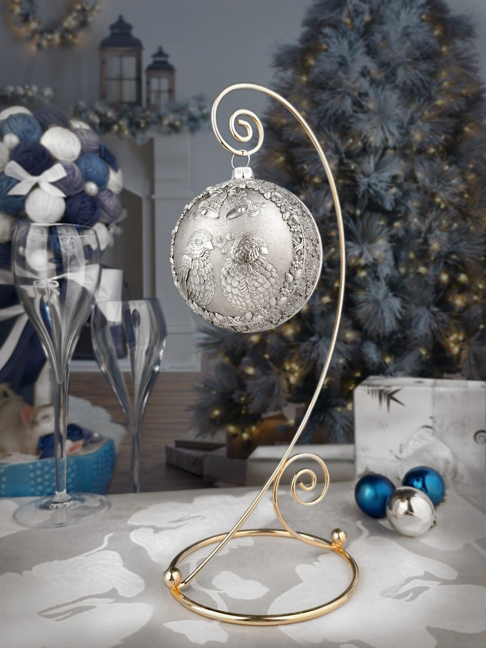 Ёлочный шар "Морозная речка" на подставкеЁлочный шар "Морозная речка" на подставкеЕлочный шар не только любимое с детства новогоднее украшение, а ещё и символ роскоши и достатка. Впервые появился он в середине XIX века стараниями стеклодувов германского местечка Лауша. Позволить себе это хрупкое удовольствие могли лишь самые обеспеченные люди. И хоть с тех пор технический прогресс предложил празднующему человечеству немало альтернатив, элитные ёлочные шарики и по сей день в большой цене. Ведь каждый из них – это настоящее рукотворное чудо!