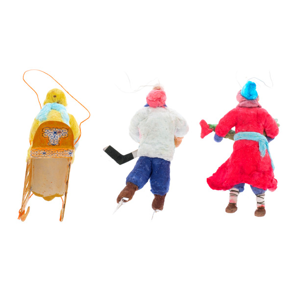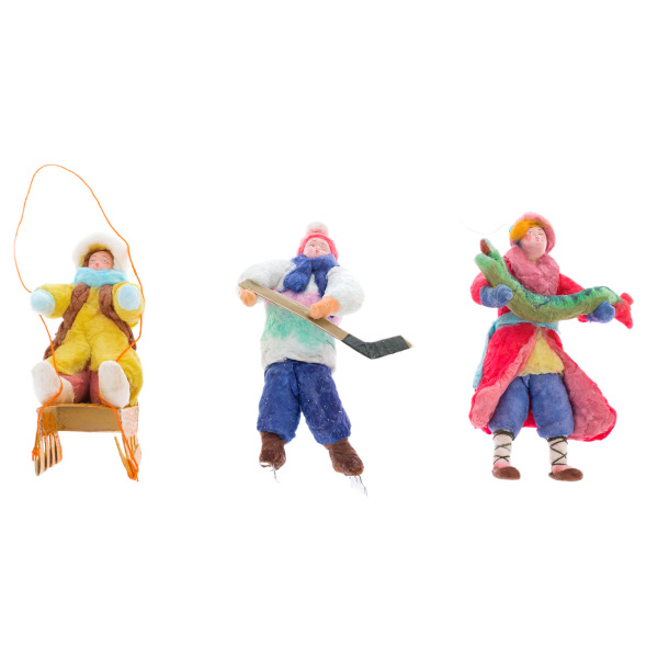 Ёлочные игрушки из ваты "Зимние забавы: рыбалка, хоккей, санки"